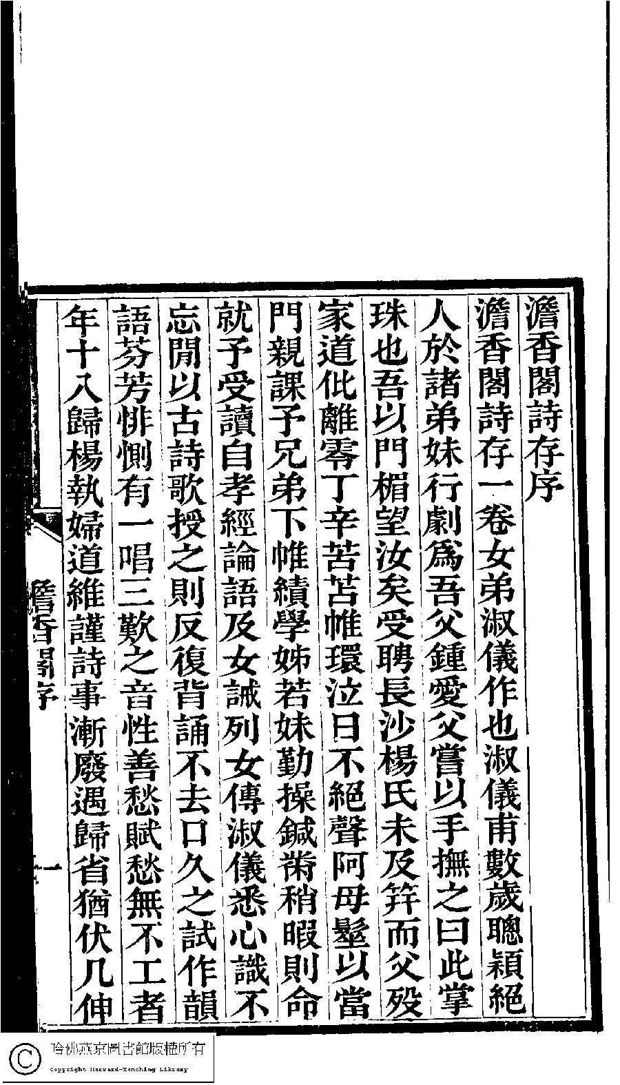 | (PRINT FRIENDLY VERSION) 澹香閣詩鈔:一卷外四種(清李星池等撰) : 澹香閣詩鈔﹕一卷(清李星池撰)。清光緖四年(1878)刻本。 ![]() Page : 澹香閣序1.b | click for larger image | 澹香閣詩鈔:一卷外四種(清李星池等撰) : 澹香閣詩鈔﹕一卷(清李星池撰)。清光緖四年(1878)刻本。![]() Page : 澹香閣序1.a | click for larger image | Back |