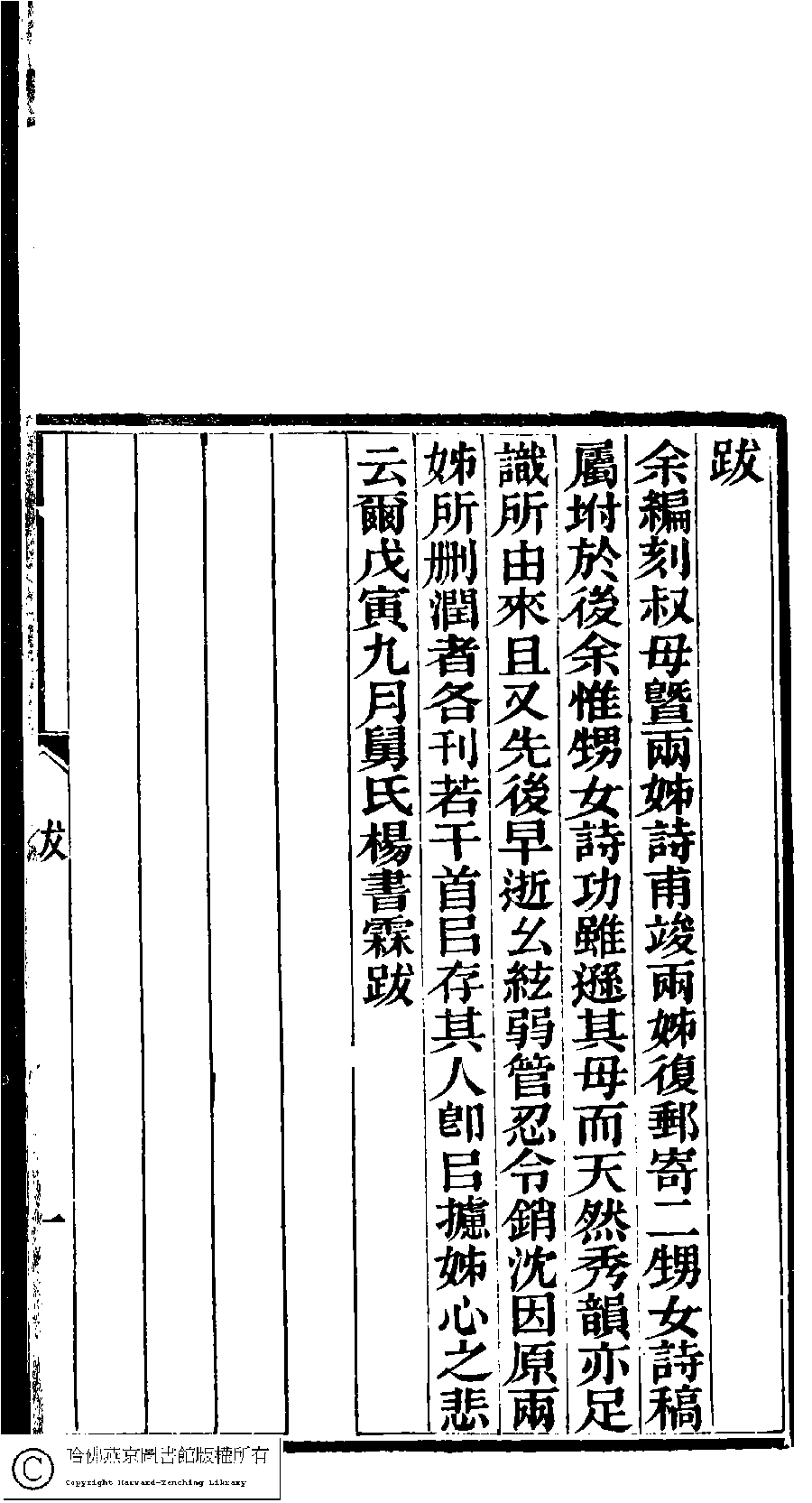 | (PRINT FRIENDLY VERSION) 澹香閣詩鈔:一卷外四種(清李星池等撰)。清光緖四年(1878)刻本。 ![]() Page : 跋.1b | click for larger image | 澹香閣詩鈔:一卷外四種(清李星池等撰)。清光緖四年(1878)刻本。![]() Page : 跋.1a | click for larger image | Back |