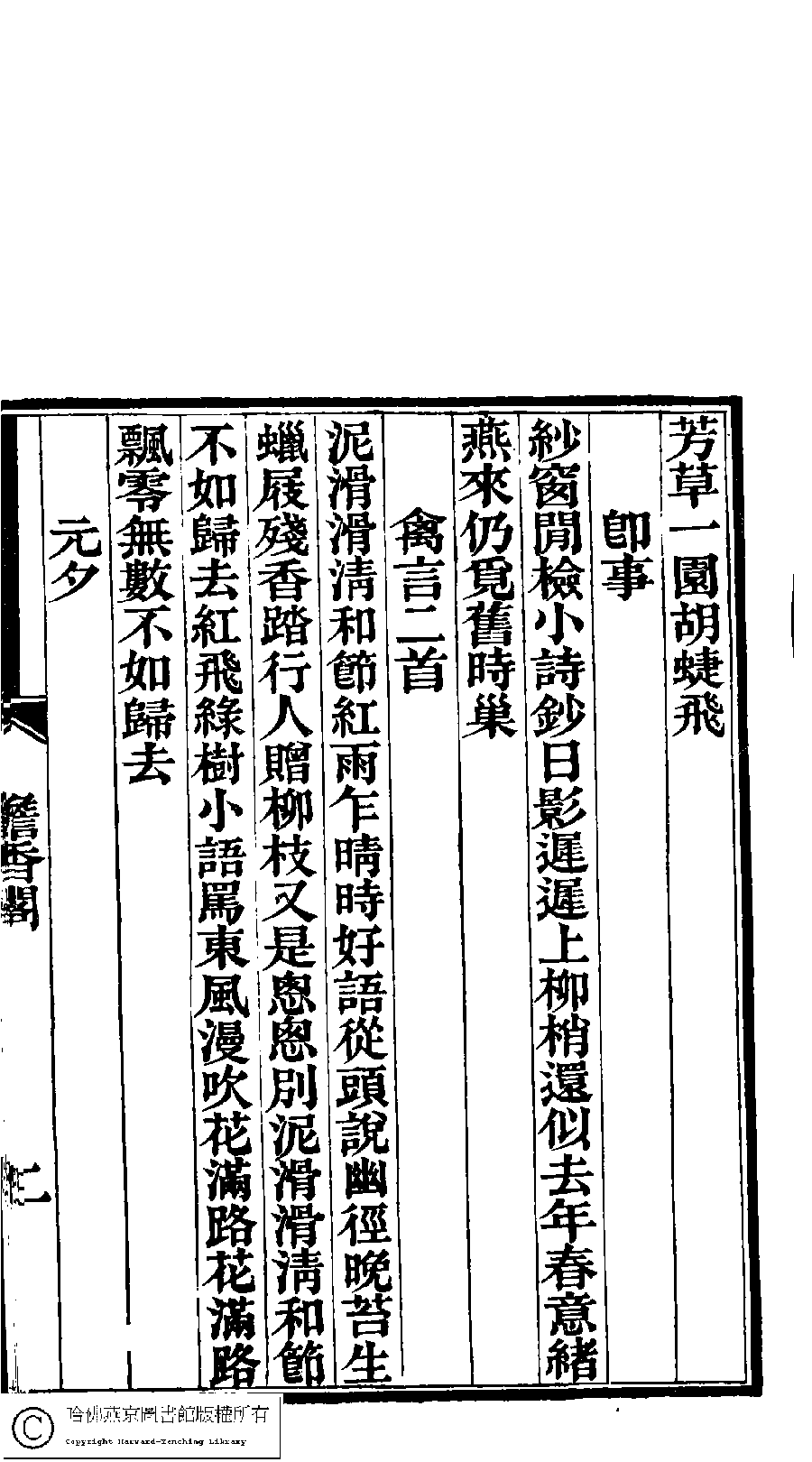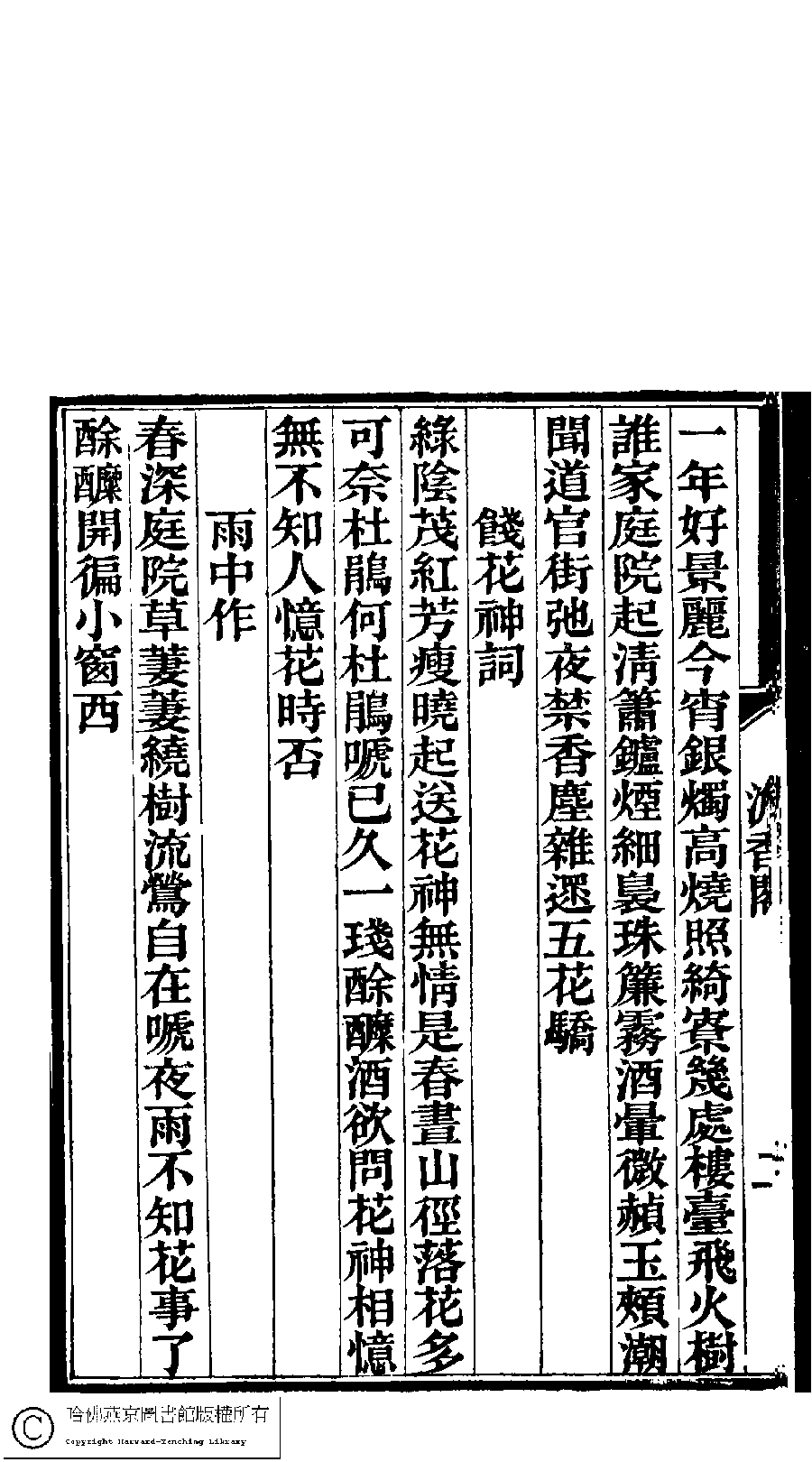 | (PRINT FRIENDLY VERSION) 澹香閣詩鈔:一卷外四種(清李星池等撰) : 澹香閣詩鈔﹕一卷(清李星池撰)。清光緖四年(1878)刻本。 ![]() Page : 1.2b | click for larger image | 澹香閣詩鈔:一卷外四種(清李星池等撰) : 澹香閣詩鈔﹕一卷(清李星池撰)。清光緖四年(1878)刻本。![]() Page : 1.2a | click for larger image | Back |