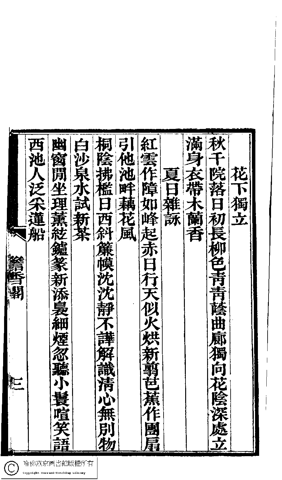 | Appears in: Dan xiang ge shi chao: 1 juan wai 4 zhong (by Li Xingchi etc., Qing dynasty): Dan xiang ge shi chao: 1 juan (by Li Xingchi, Qing dynasty) |
