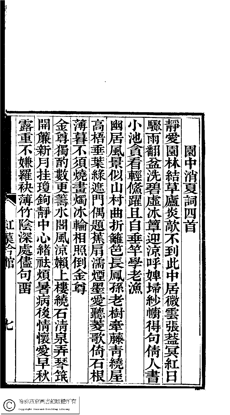 | (PRINT FRIENDLY VERSION) 澹香閣詩鈔:一卷外四種(清李星池等撰) : 紅蕖吟館詩鈔﹕一卷(清楊書蘭撰)。清光緖四年(1878)刻本。 ![]() Page : 2.7b | click for larger image | 澹香閣詩鈔:一卷外四種(清李星池等撰) : 紅蕖吟館詩鈔﹕一卷(清楊書蘭撰)。清光緖四年(1878)刻本。![]() Page : 2.7a | click for larger image | Back |