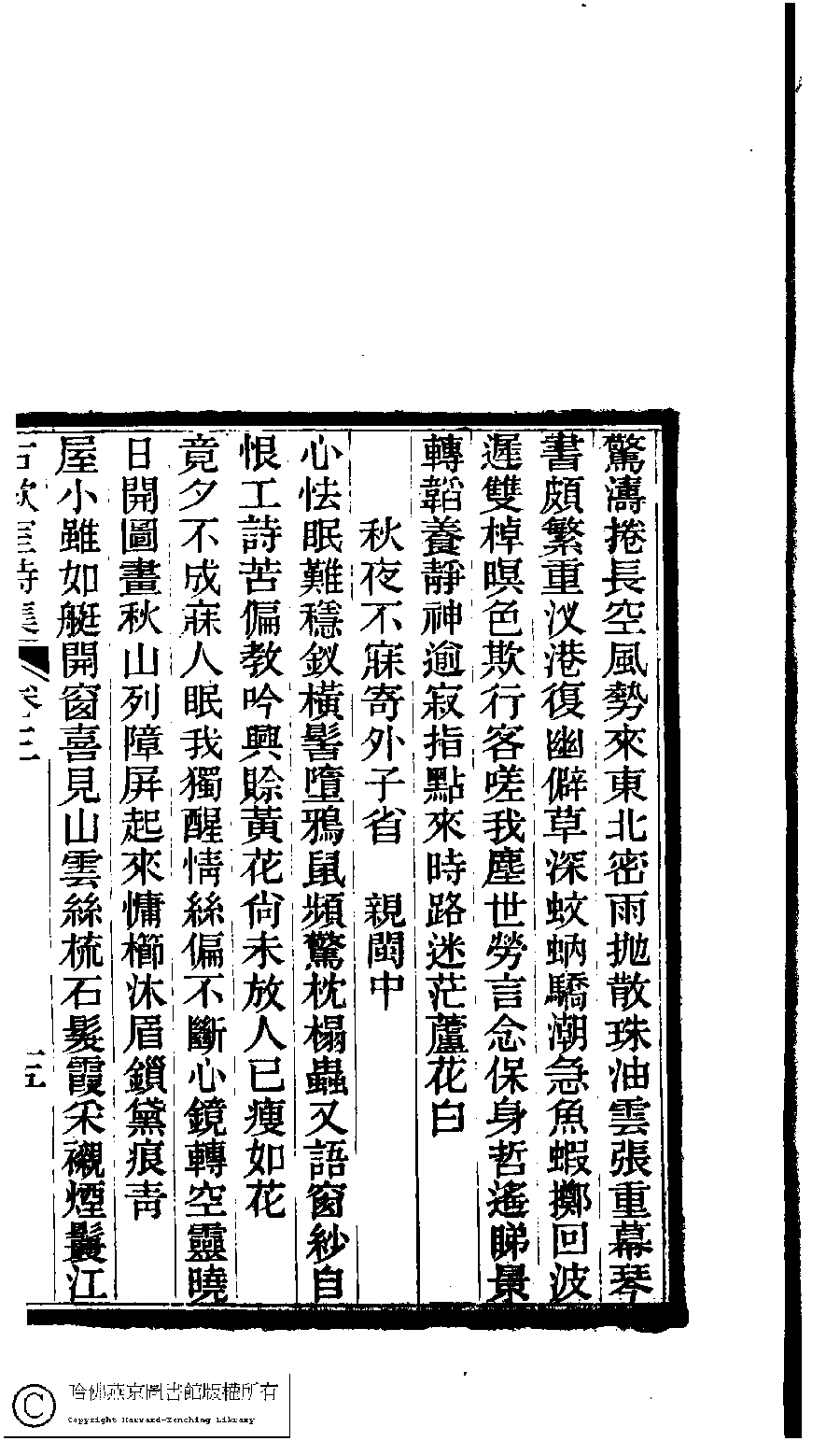 | (PRINT FRIENDLY VERSION) 古歡室集:詩三卷,詞一卷,醫學篇二卷,女學篇一卷,中饋錄一卷(清曽懿撰)。清光緖三十三年(1907)刻本。 ![]() Page : 3.15a | click for larger image | 古歡室集:詩三卷,詞一卷,醫學篇二卷,女學篇一卷,中饋錄一卷(清曽懿撰)。清光緖三十三年(1907)刻本。![]() Page : 3.14b | click for larger image | Back |