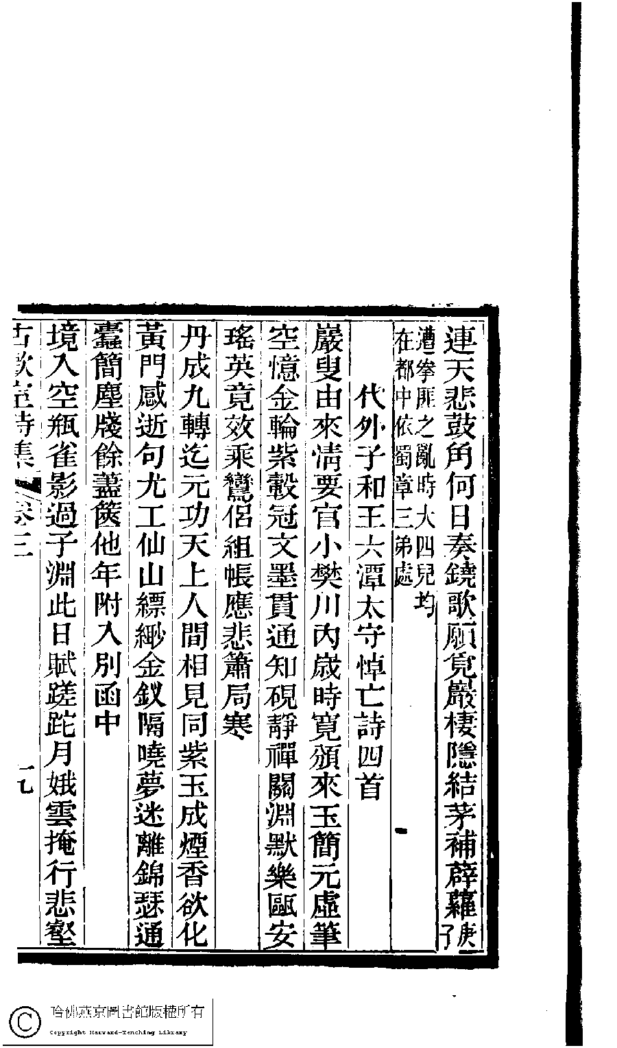 | (PRINT FRIENDLY VERSION) 古歡室集:詩三卷,詞一卷,醫學篇二卷,女學篇一卷,中饋錄一卷(清曽懿撰)。清光緖三十三年(1907)刻本。 ![]() Page : 3.19b | click for larger image | 古歡室集:詩三卷,詞一卷,醫學篇二卷,女學篇一卷,中饋錄一卷(清曽懿撰)。清光緖三十三年(1907)刻本。![]() Page : 3.19a | click for larger image | Back |