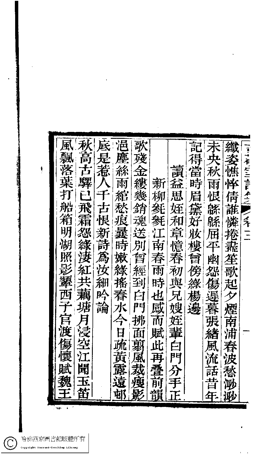 | (PRINT FRIENDLY VERSION) 古歡室集:詩三卷,詞一卷,醫學篇二卷,女學篇一卷,中饋錄一卷(清曽懿撰)。清光緖三十三年(1907)刻本。 ![]() Page : 3.20b | click for larger image | 古歡室集:詩三卷,詞一卷,醫學篇二卷,女學篇一卷,中饋錄一卷(清曽懿撰)。清光緖三十三年(1907)刻本。![]() Page : 3.20a | click for larger image | Back |