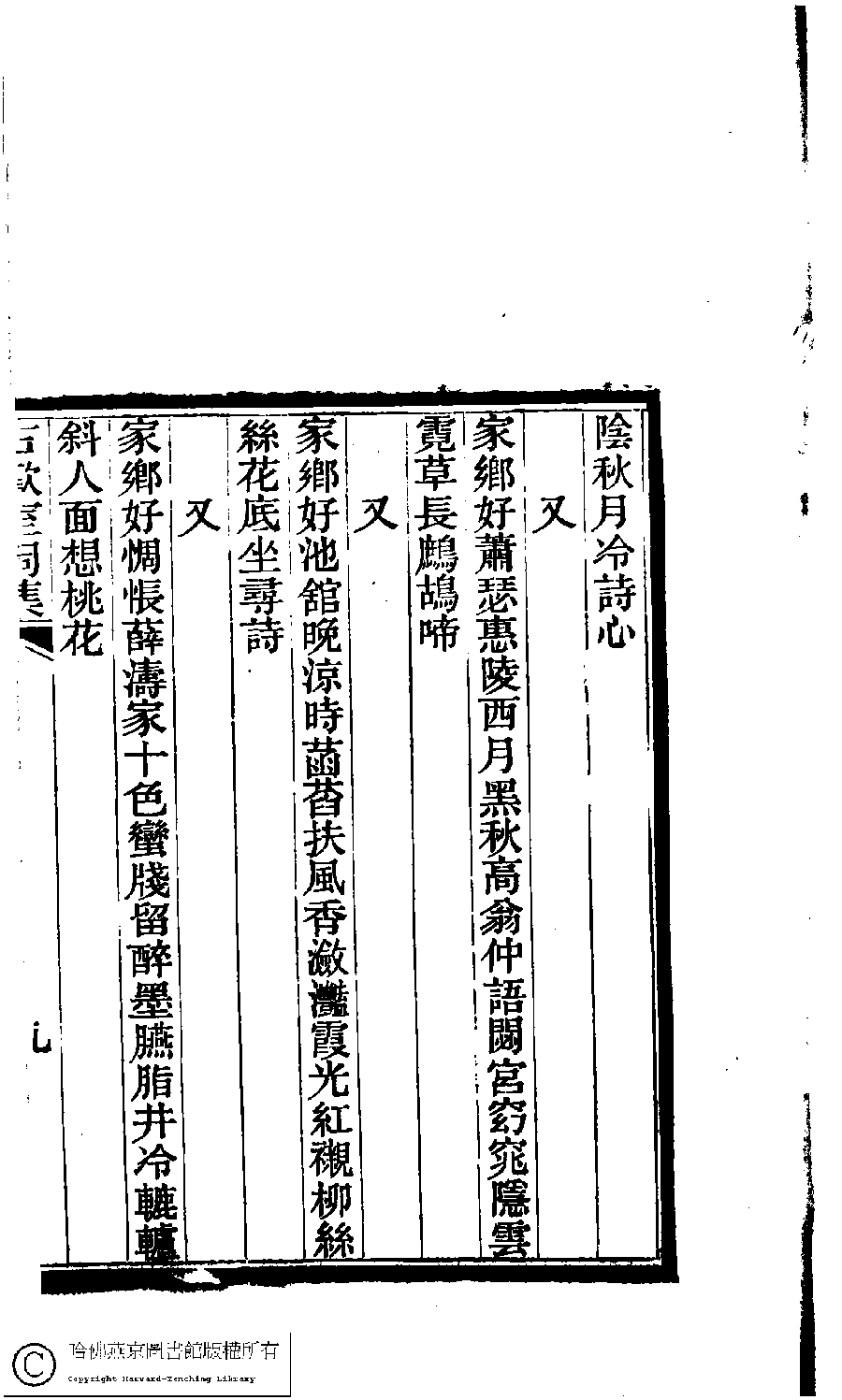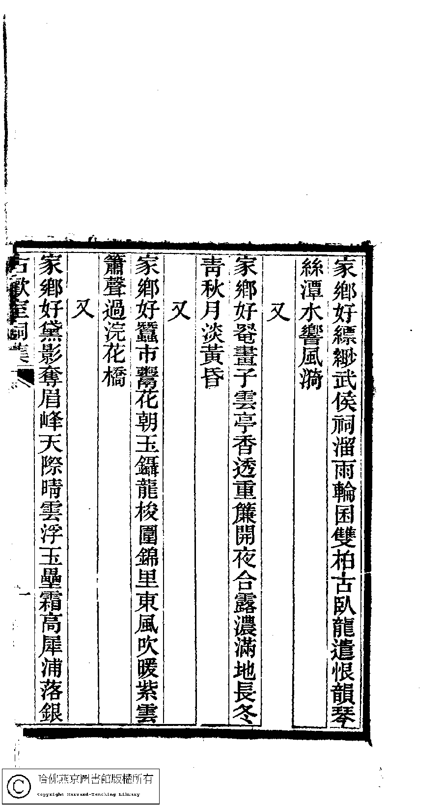 古歡室集:詩三卷,詞一卷,醫學篇二卷,女學篇一卷,中饋錄一卷(清曽懿撰)![]() Page : 詞.10b | click for larger image | 古歡室集:詩三卷,詞一卷,醫學篇二卷,女學篇一卷,中饋錄一卷(清曽懿撰)![]() Page : 詞.10a | click for larger image | Back |