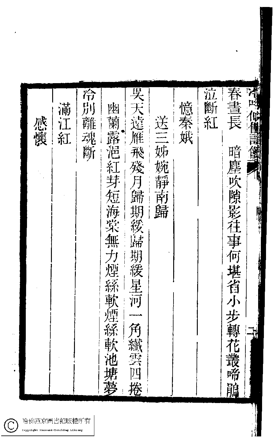 | (PRINT FRIENDLY VERSION) 冷吟仙舘詩稿﹕八卷﹐詩餘一卷﹐文存一卷(淸左錫嘉撰)。淸光緖辛卯(1891)刻本。 ![]() Page : 詩餘.2b | click for larger image | 冷吟仙舘詩稿﹕八卷﹐詩餘一卷﹐文存一卷(淸左錫嘉撰)。淸光緖辛卯(1891)刻本。![]() Page : 詩餘.2a | click for larger image | Back |