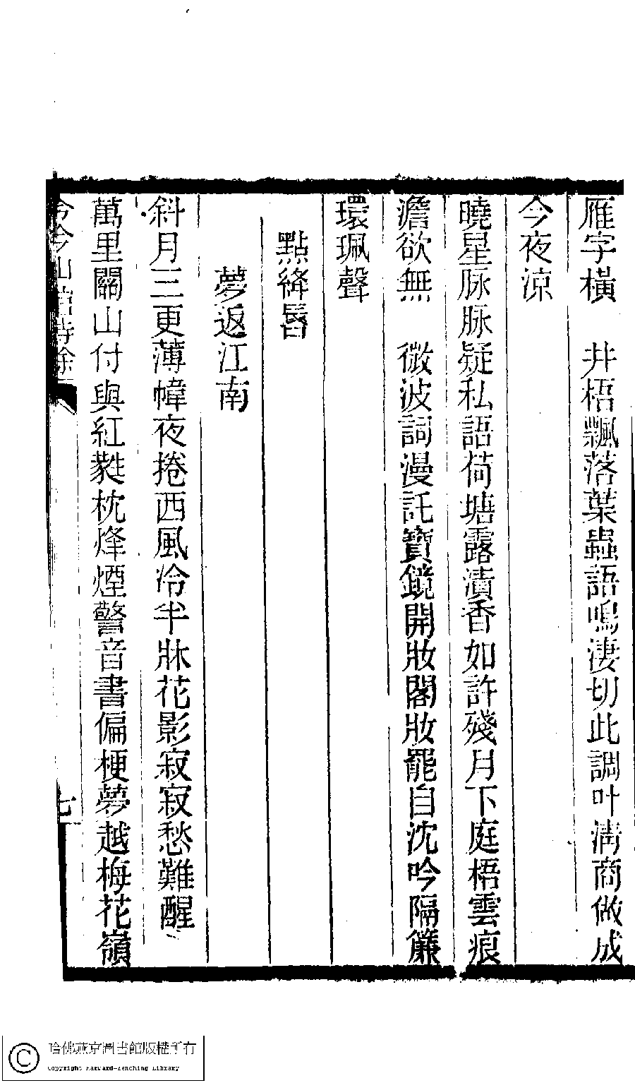 | (PRINT FRIENDLY VERSION) 冷吟仙舘詩稿﹕八卷﹐詩餘一卷﹐文存一卷(淸左錫嘉撰)。淸光緖辛卯(1891)刻本。 ![]() Page : 詩餘.7a | click for larger image | 冷吟仙舘詩稿﹕八卷﹐詩餘一卷﹐文存一卷(淸左錫嘉撰)。淸光緖辛卯(1891)刻本。![]() Page : 詩餘.6b | click for larger image | Back |