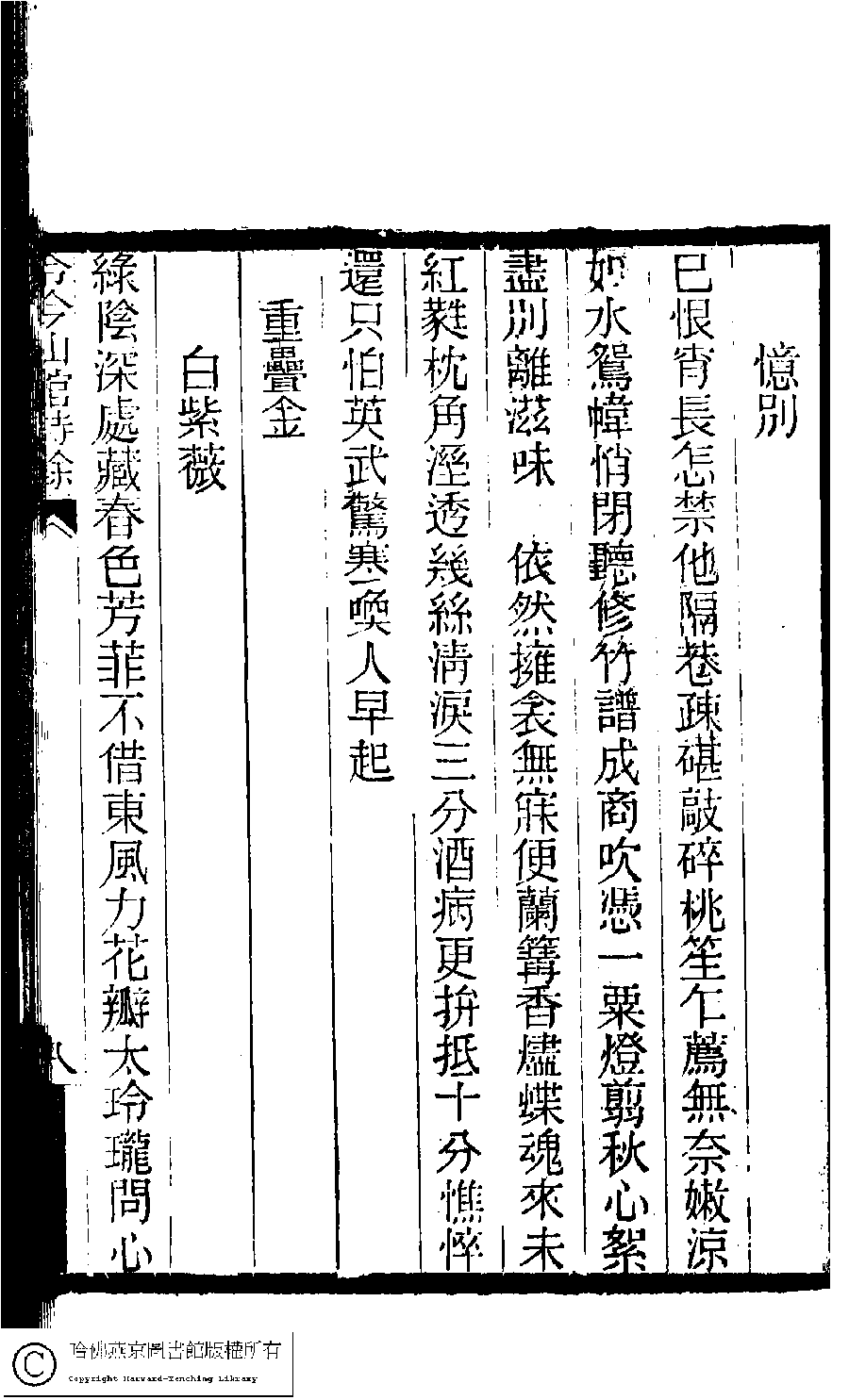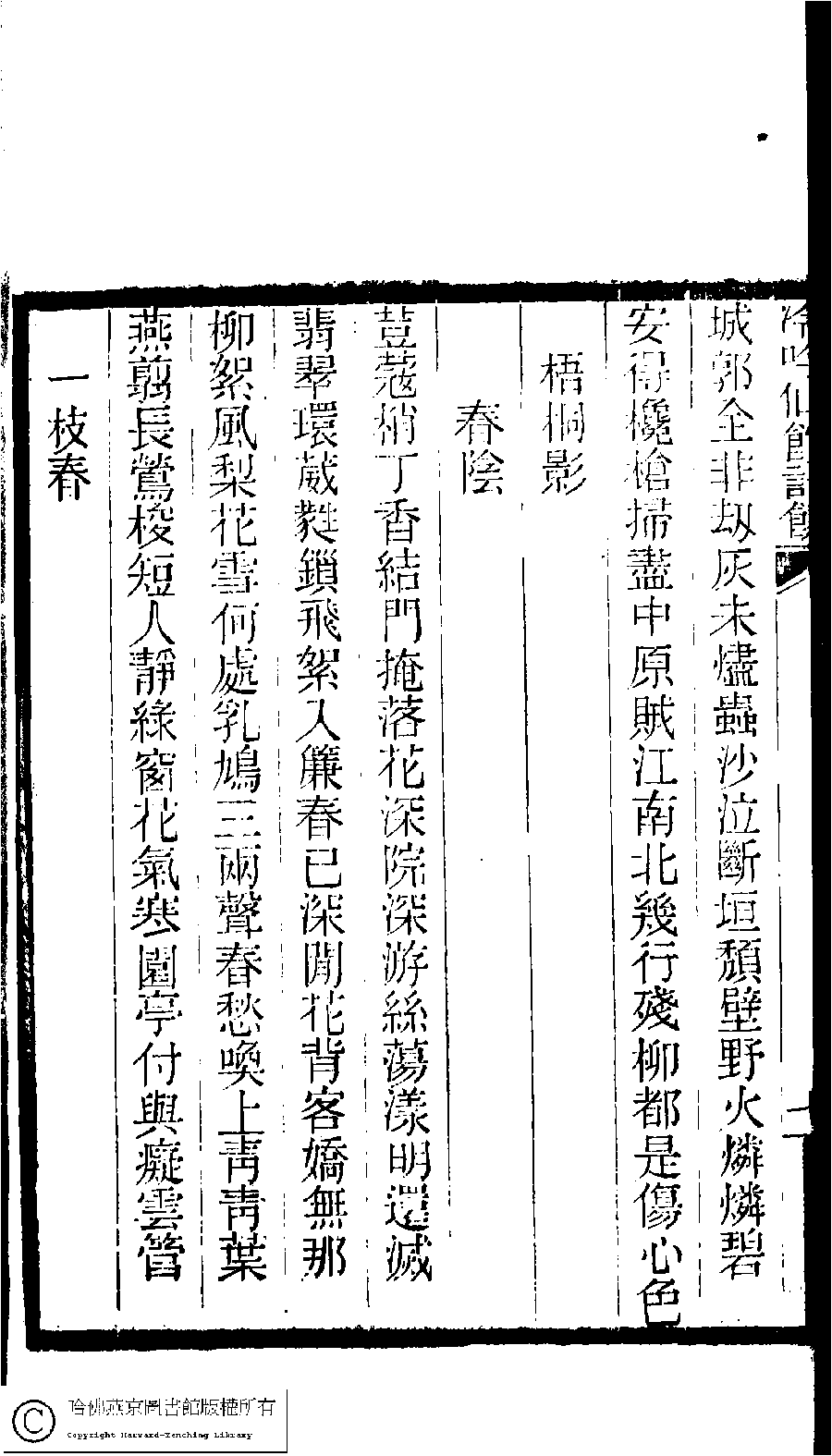 | (PRINT FRIENDLY VERSION) 冷吟仙舘詩稿﹕八卷﹐詩餘一卷﹐文存一卷(淸左錫嘉撰)。淸光緖辛卯(1891)刻本。 ![]() Page : 詩餘.8a | click for larger image | 冷吟仙舘詩稿﹕八卷﹐詩餘一卷﹐文存一卷(淸左錫嘉撰)。淸光緖辛卯(1891)刻本。![]() Page : 詩餘.7b | click for larger image | Back |