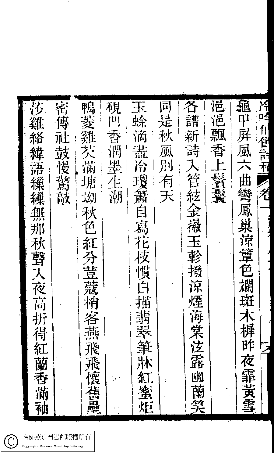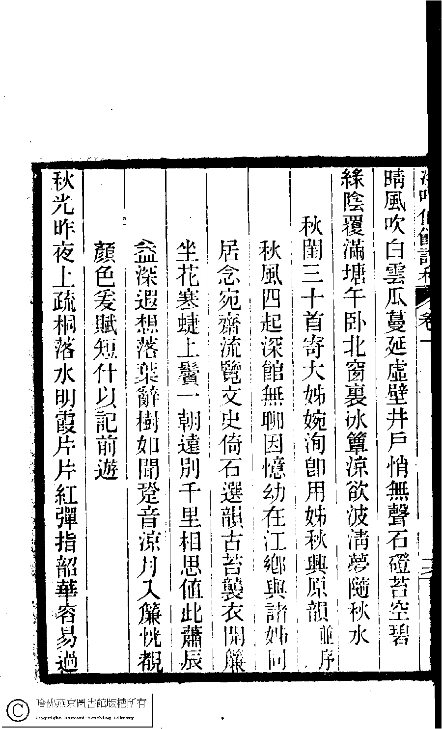 | (PRINT FRIENDLY VERSION) 冷吟仙舘詩稿﹕八卷﹐詩餘一卷﹐文存一卷(淸左錫嘉撰) ![]() Page : 1.18a | click for larger image | 冷吟仙舘詩稿﹕八卷﹐詩餘一卷﹐文存一卷(淸左錫嘉撰)![]() Page : 1.17b | click for larger image | 冷吟仙舘詩稿﹕八卷﹐詩餘一卷﹐文存一卷(淸左錫嘉撰)![]() Page : 1.17a | click for larger image | 冷吟仙舘詩稿﹕八卷﹐詩餘一卷﹐文存一卷(淸左錫嘉撰)![]() Page : 1.16b | click for larger image |