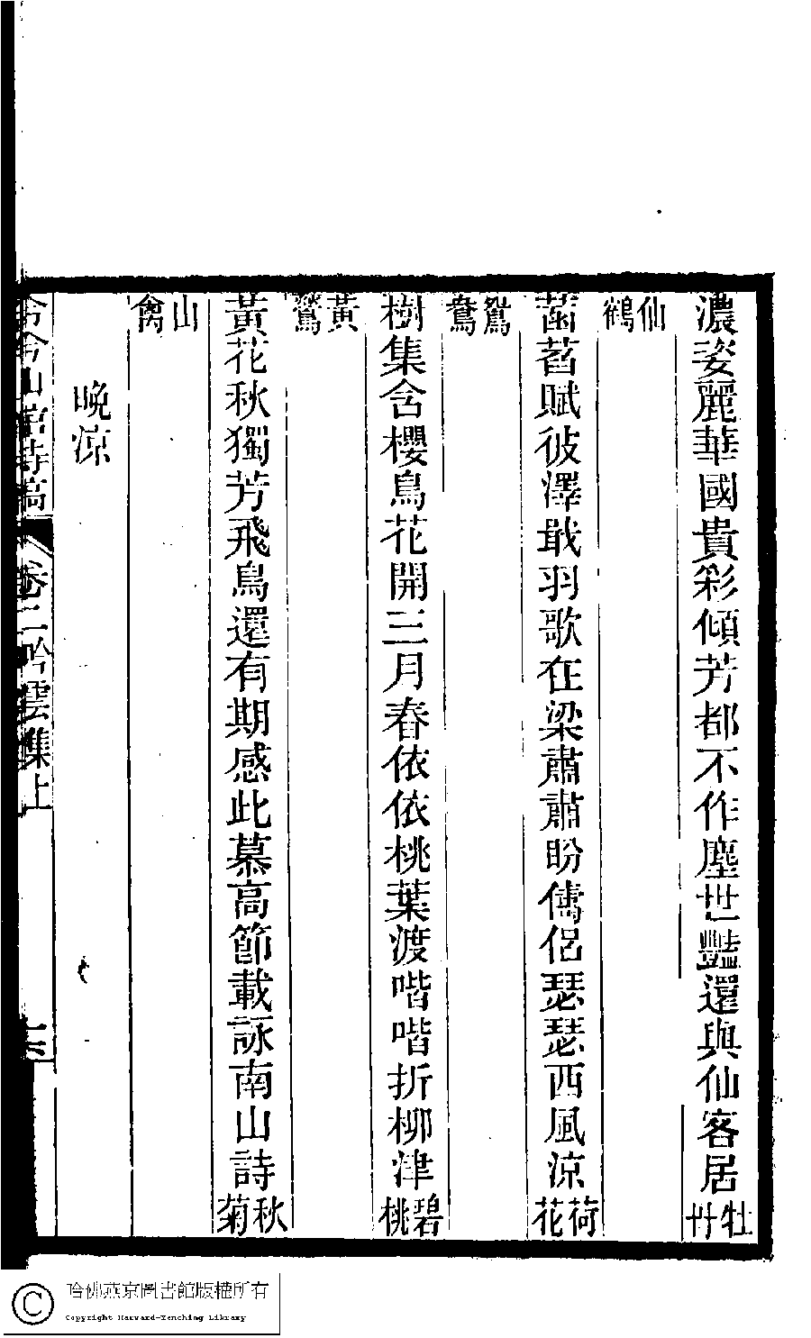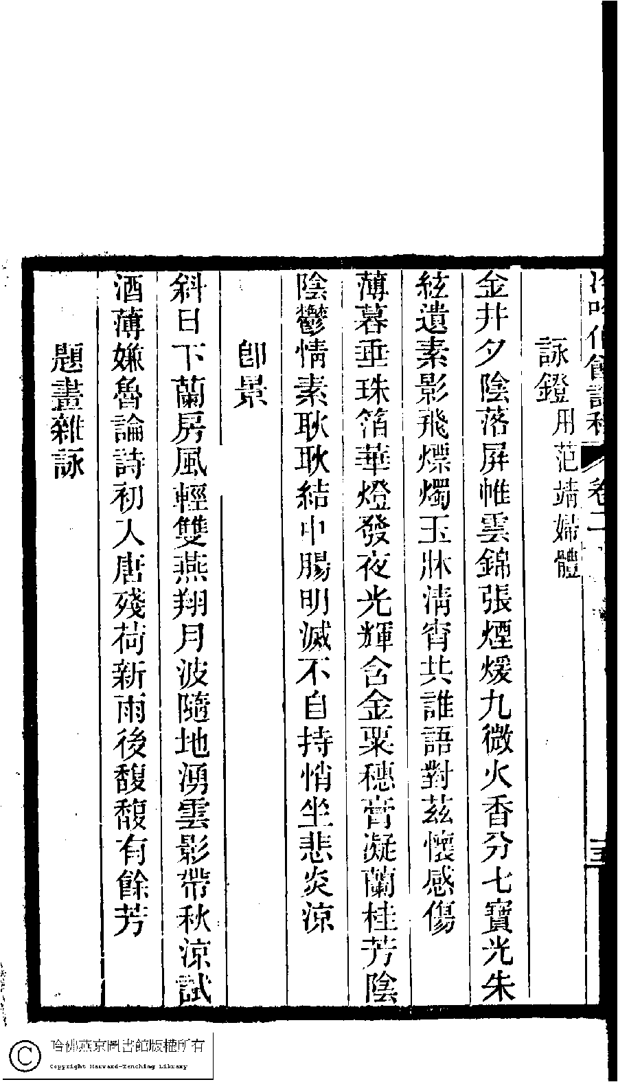 | (PRINT FRIENDLY VERSION) 冷吟仙舘詩稿﹕八卷﹐詩餘一卷﹐文存一卷(淸左錫嘉撰)。淸光緖辛卯(1891)刻本。 ![]() Page : 2.16a | click for larger image | 冷吟仙舘詩稿﹕八卷﹐詩餘一卷﹐文存一卷(淸左錫嘉撰)。淸光緖辛卯(1891)刻本。![]() Page : 2.15b | click for larger image | Back |