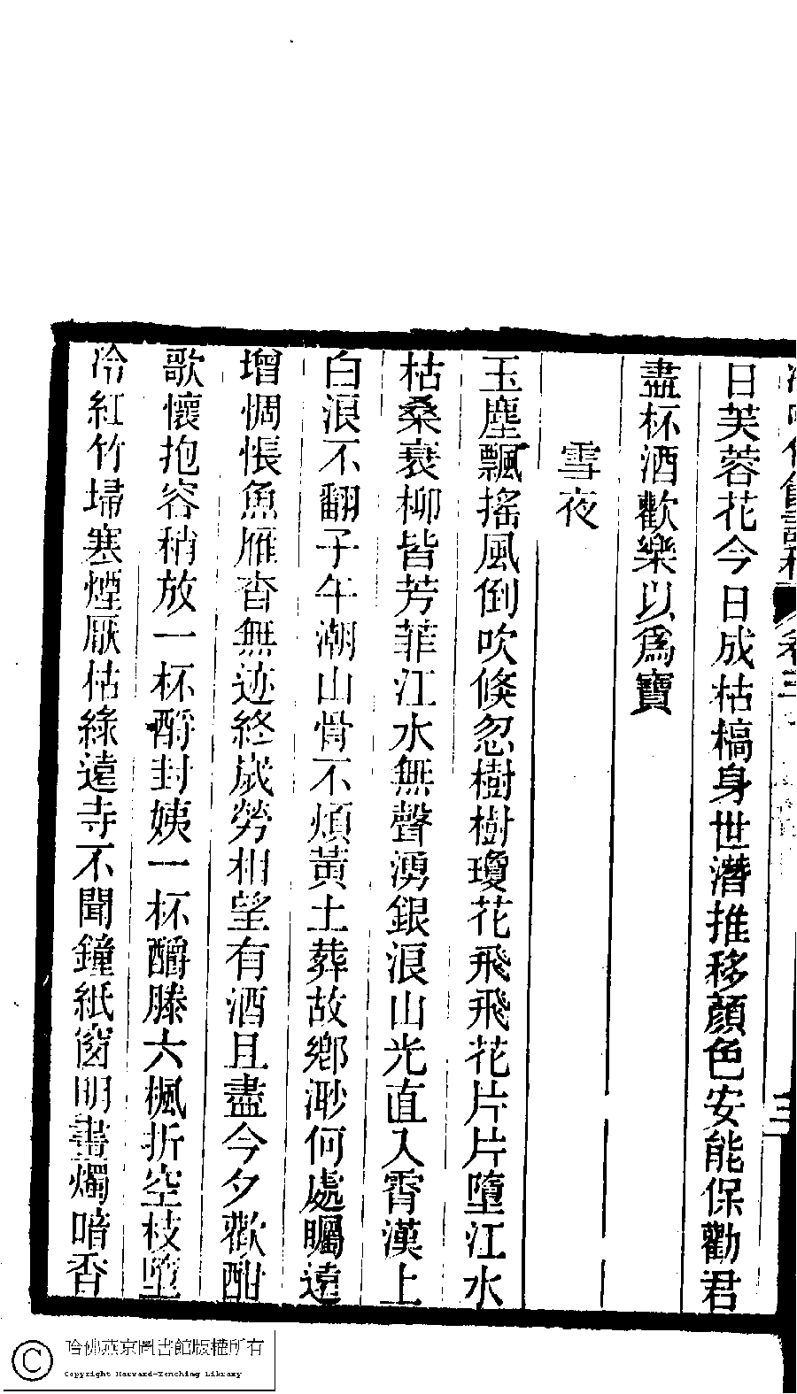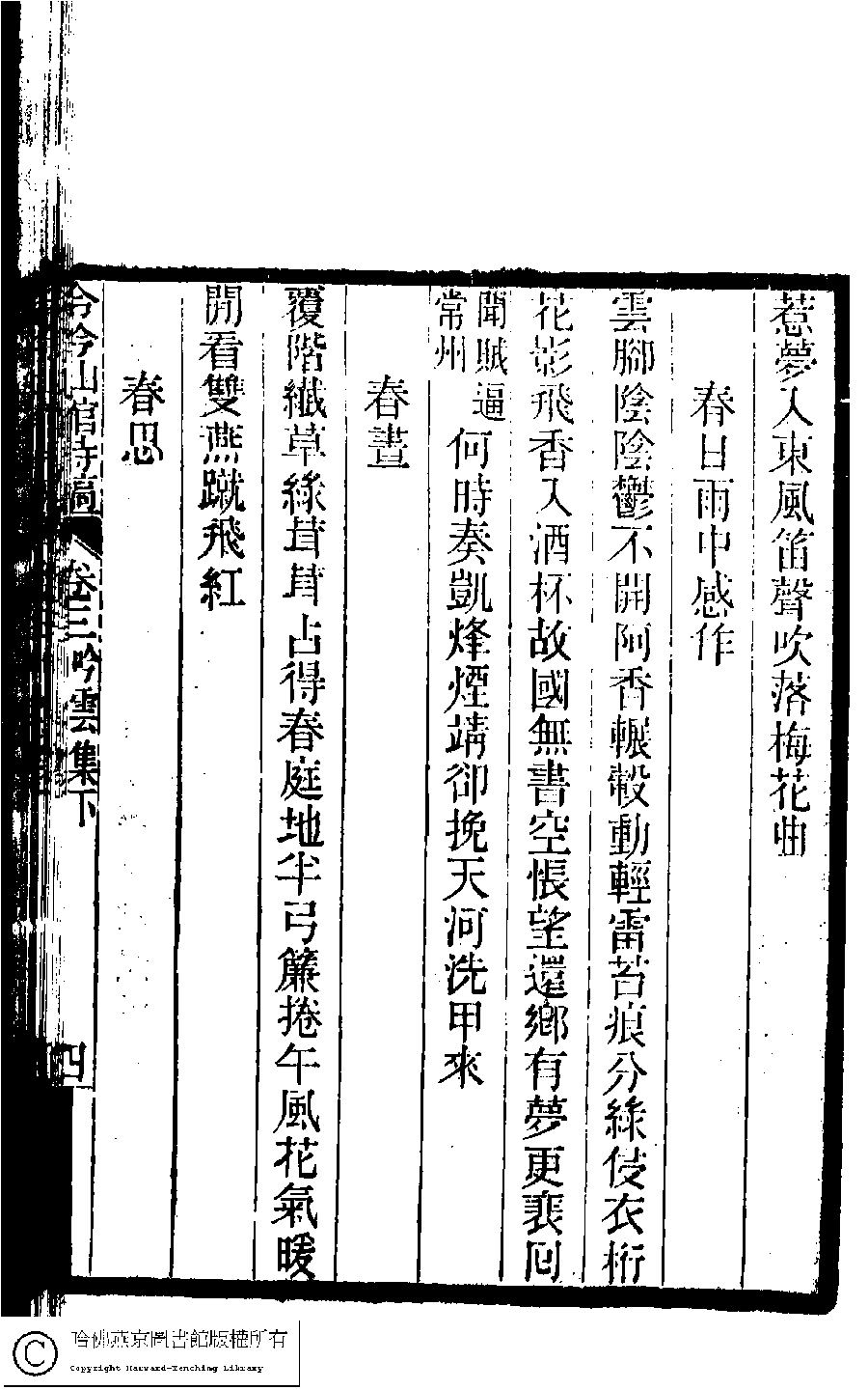 | (PRINT FRIENDLY VERSION) 冷吟仙舘詩稿﹕八卷﹐詩餘一卷﹐文存一卷(淸左錫嘉撰)。淸光緖辛卯(1891)刻本。 ![]() Page : 3.4a | click for larger image | 冷吟仙舘詩稿﹕八卷﹐詩餘一卷﹐文存一卷(淸左錫嘉撰)。淸光緖辛卯(1891)刻本。![]() Page : 3.3b | click for larger image | Back |