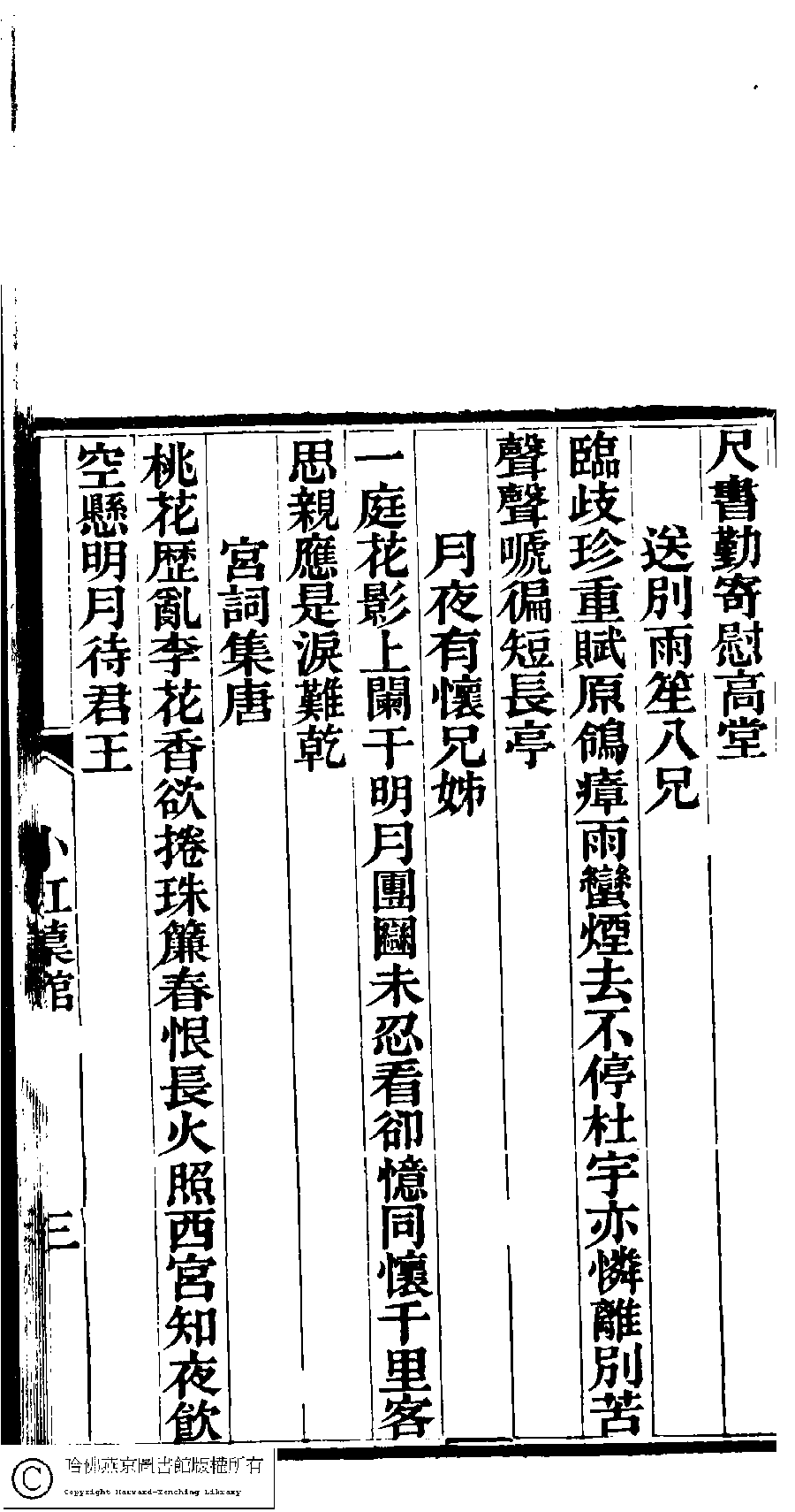| (PRINT FRIENDLY VERSION) 澹香閣詩鈔:一卷外四種(清李星池等撰) : 小紅蕖館詩﹕一卷(清周傳鏡撰)。清光緖四年(1878)刻本。 ![]() Page : 4.3a | click for larger image | 澹香閣詩鈔:一卷外四種(清李星池等撰) : 小紅蕖館詩﹕一卷(清周傳鏡撰)。清光緖四年(1878)刻本。![]() Page : 4.2b | click for larger image | Back |