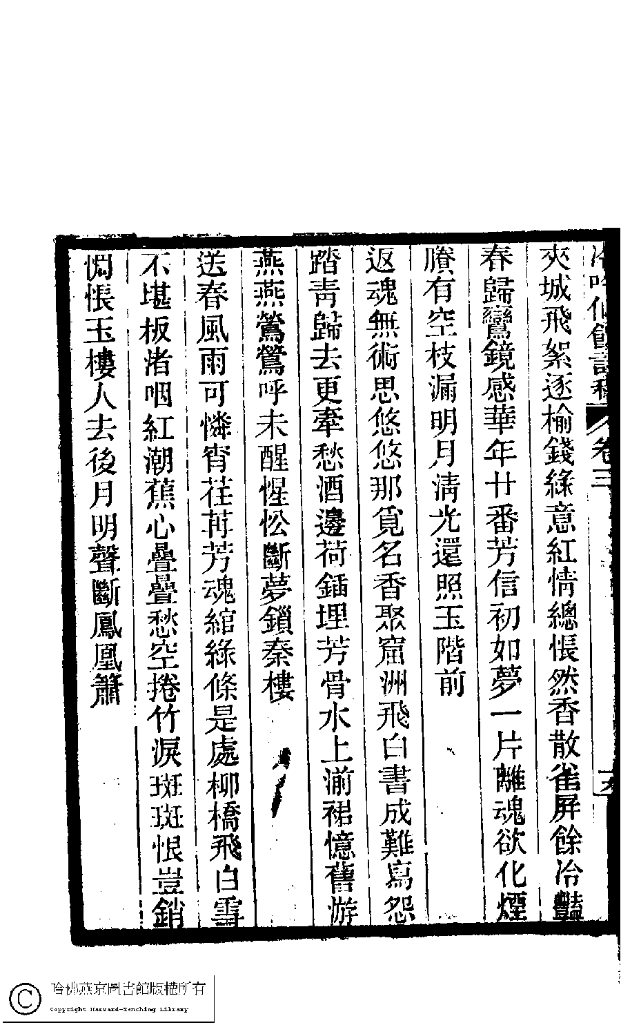 | (PRINT FRIENDLY VERSION) 冷吟仙舘詩稿﹕八卷﹐詩餘一卷﹐文存一卷(淸左錫嘉撰)。淸光緖辛卯(1891)刻本。 ![]() Page : 3.19b | click for larger image | 冷吟仙舘詩稿﹕八卷﹐詩餘一卷﹐文存一卷(淸左錫嘉撰)。淸光緖辛卯(1891)刻本。![]() Page : 3.19a | click for larger image | Back |
