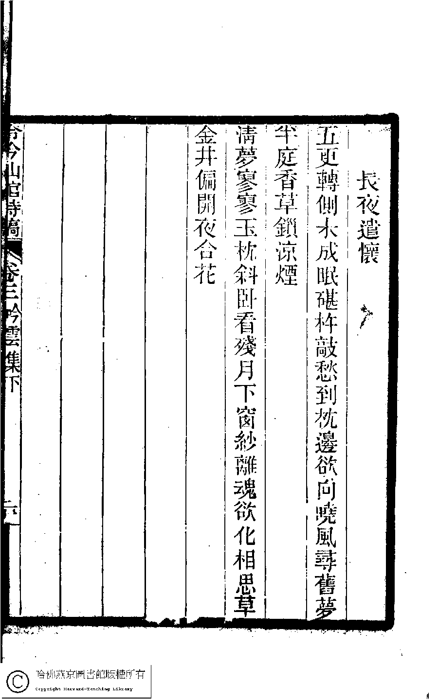 | (PRINT FRIENDLY VERSION) 冷吟仙舘詩稿﹕八卷﹐詩餘一卷﹐文存一卷(淸左錫嘉撰)。淸光緖辛卯(1891)刻本。 ![]() Page : 3.20b | click for larger image | 冷吟仙舘詩稿﹕八卷﹐詩餘一卷﹐文存一卷(淸左錫嘉撰)。淸光緖辛卯(1891)刻本。![]() Page : 3.20a | click for larger image | Back |