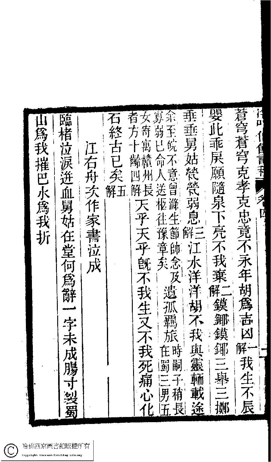 | (PRINT FRIENDLY VERSION) 冷吟仙舘詩稿﹕八卷﹐詩餘一卷﹐文存一卷(淸左錫嘉撰)。淸光緖辛卯(1891)刻本。 ![]() Page : 4.2a | click for larger image | 冷吟仙舘詩稿﹕八卷﹐詩餘一卷﹐文存一卷(淸左錫嘉撰)。淸光緖辛卯(1891)刻本。![]() Page : 4.1b | click for larger image | Back |