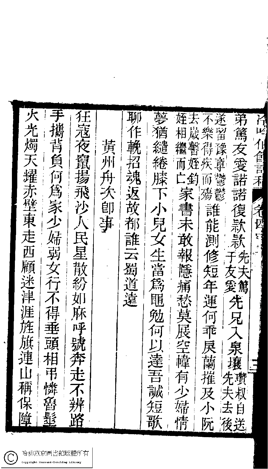 | (PRINT FRIENDLY VERSION) 冷吟仙舘詩稿﹕八卷﹐詩餘一卷﹐文存一卷(淸左錫嘉撰)。淸光緖辛卯(1891)刻本。 ![]() Page : 4.4a | click for larger image | 冷吟仙舘詩稿﹕八卷﹐詩餘一卷﹐文存一卷(淸左錫嘉撰)。淸光緖辛卯(1891)刻本。![]() Page : 4.3b | click for larger image | Back |