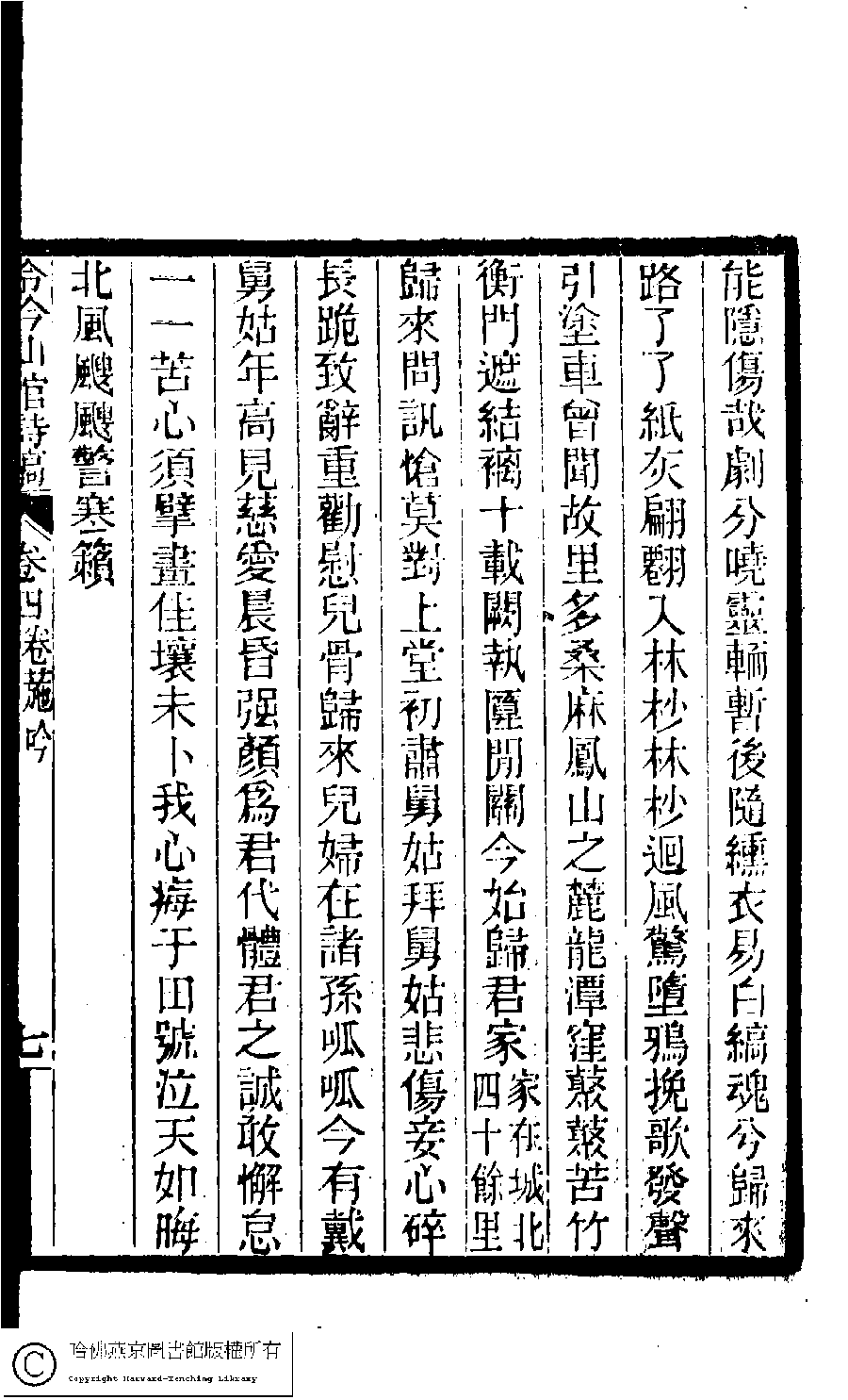 | (PRINT FRIENDLY VERSION) 冷吟仙舘詩稿﹕八卷﹐詩餘一卷﹐文存一卷(淸左錫嘉撰)。淸光緖辛卯(1891)刻本。 ![]() Page : 4.7b | click for larger image | 冷吟仙舘詩稿﹕八卷﹐詩餘一卷﹐文存一卷(淸左錫嘉撰)。淸光緖辛卯(1891)刻本。![]() Page : 4.7a | click for larger image | 冷吟仙舘詩稿﹕八卷﹐詩餘一卷﹐文存一卷(淸左錫嘉撰)。淸光緖辛卯(1891)刻本。![]() Page : 4.6b | click for larger image | Back |