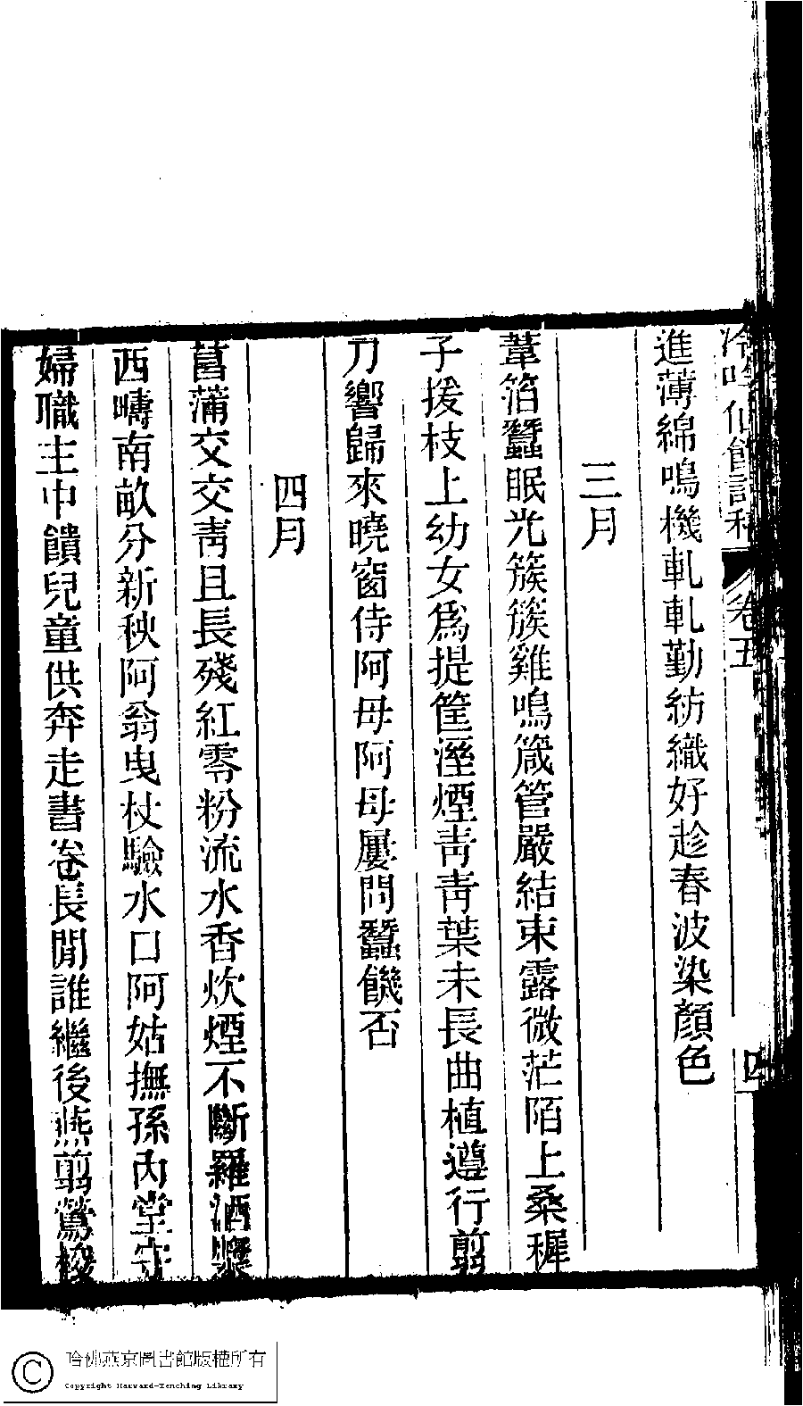 | (PRINT FRIENDLY VERSION) 冷吟仙舘詩稿﹕八卷﹐詩餘一卷﹐文存一卷(淸左錫嘉撰)。淸光緖辛卯(1891)刻本。 ![]() Page : 5.4b | click for larger image | Back |