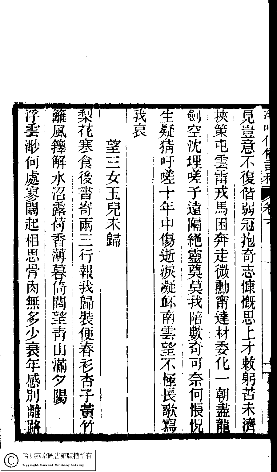 | (PRINT FRIENDLY VERSION) 冷吟仙舘詩稿﹕八卷﹐詩餘一卷﹐文存一卷(淸左錫嘉撰)。淸光緖辛卯(1891)刻本。 ![]() Page : 6.10b | click for larger image | 冷吟仙舘詩稿﹕八卷﹐詩餘一卷﹐文存一卷(淸左錫嘉撰)。淸光緖辛卯(1891)刻本。![]() Page : 6.10a | click for larger image | Back |