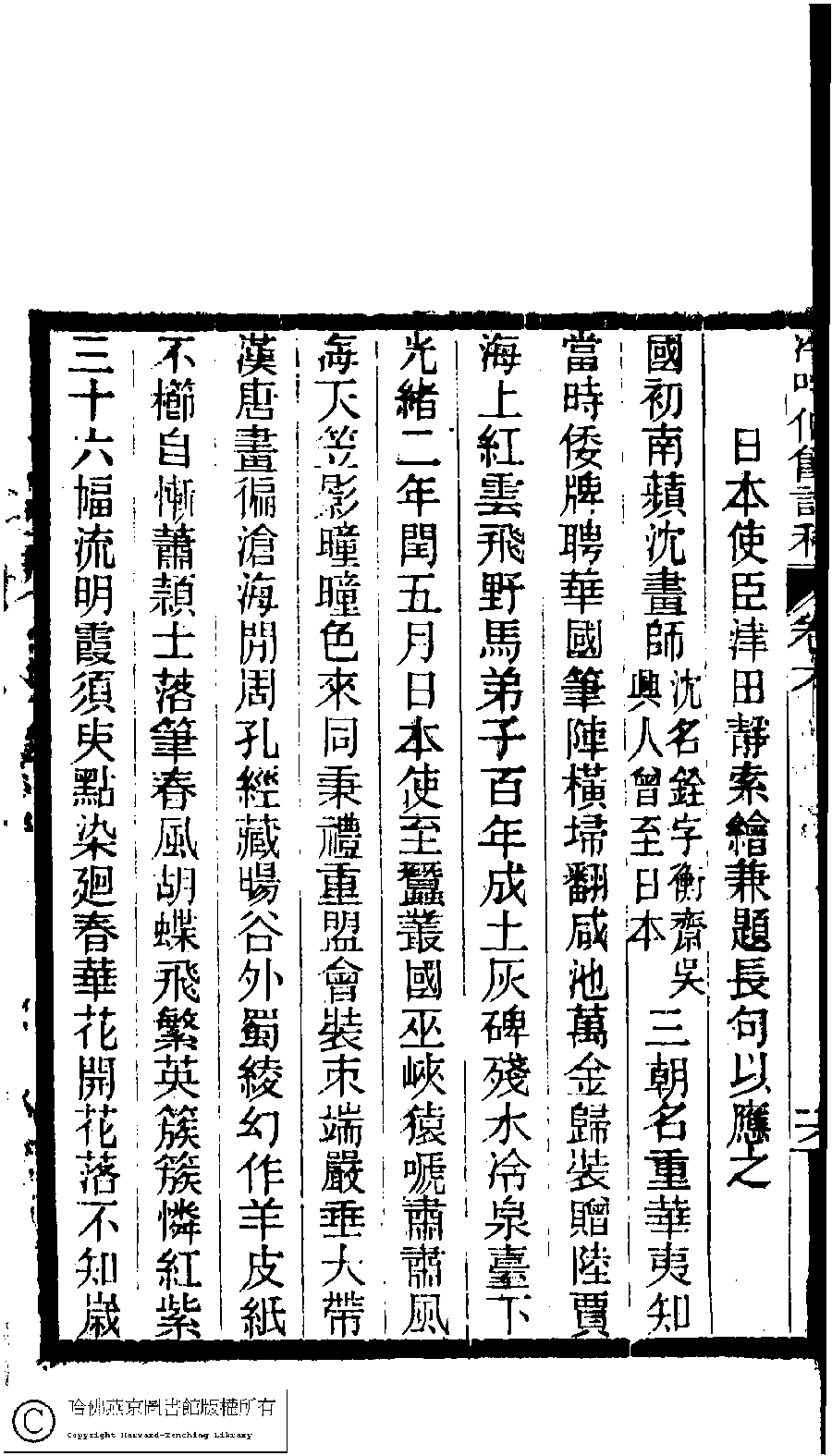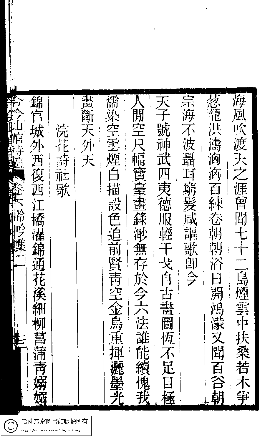 | (PRINT FRIENDLY VERSION) 冷吟仙舘詩稿﹕八卷﹐詩餘一卷﹐文存一卷(淸左錫嘉撰)。淸光緖辛卯(1891)刻本。 ![]() Page : 6.17a | click for larger image | 冷吟仙舘詩稿﹕八卷﹐詩餘一卷﹐文存一卷(淸左錫嘉撰)。淸光緖辛卯(1891)刻本。![]() Page : 6.16b | click for larger image | Back |