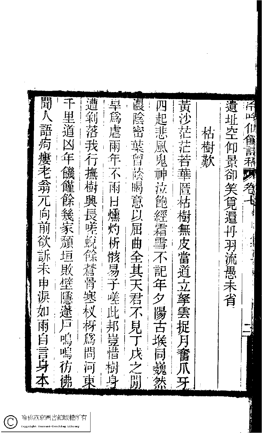 | (PRINT FRIENDLY VERSION) 冷吟仙舘詩稿﹕八卷﹐詩餘一卷﹐文存一卷(淸左錫嘉撰)。淸光緖辛卯(1891)刻本。 ![]() Page : 7.2b | click for larger image | 冷吟仙舘詩稿﹕八卷﹐詩餘一卷﹐文存一卷(淸左錫嘉撰)。淸光緖辛卯(1891)刻本。![]() Page : 7.2a | click for larger image | Back |