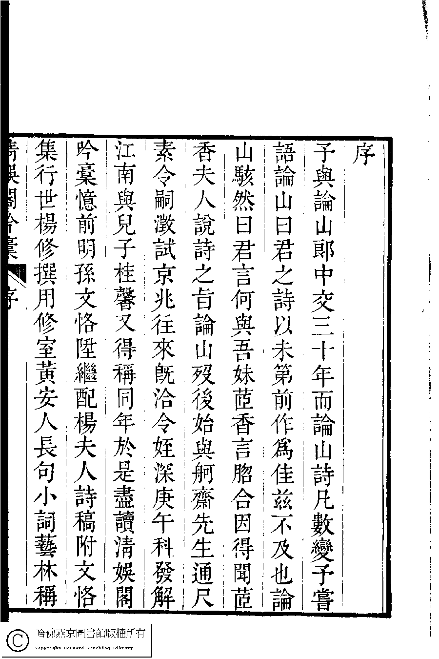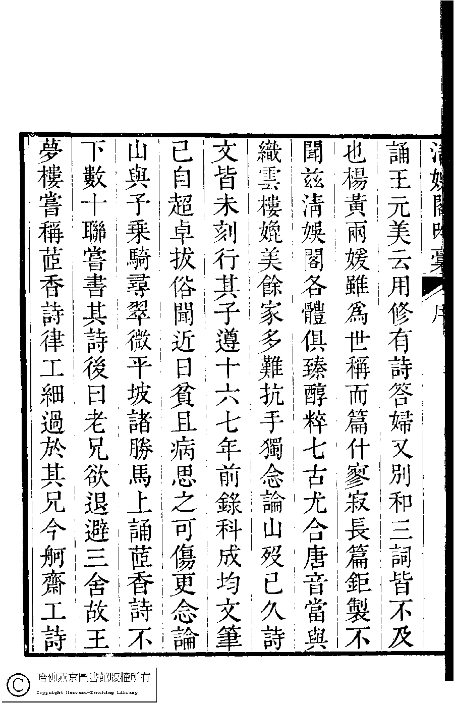 | (PRINT FRIENDLY VERSION) 清娛閣吟稾﹕六卷(清鮑之蕙撰)。嘉慶16年 [1811]刻本 ![]() Page : 法式善序.2b | click for larger image | 清娛閣吟稾﹕六卷(清鮑之蕙撰)。嘉慶16年 [1811]刻本![]() Page : 法式善序.2a | click for larger image | 清娛閣吟稾﹕六卷(清鮑之蕙撰)。嘉慶16年 [1811]刻本![]() Page : 法式善序.1b | click for larger image | 清娛閣吟稾﹕六卷(清鮑之蕙撰)。嘉慶16年 [1811]刻本![]() Page : 法式善序.1a | click for larger image | Back |