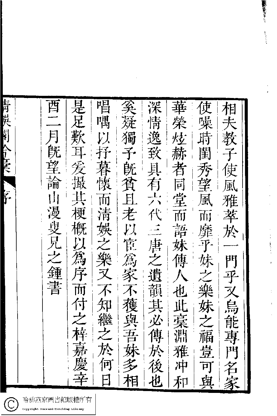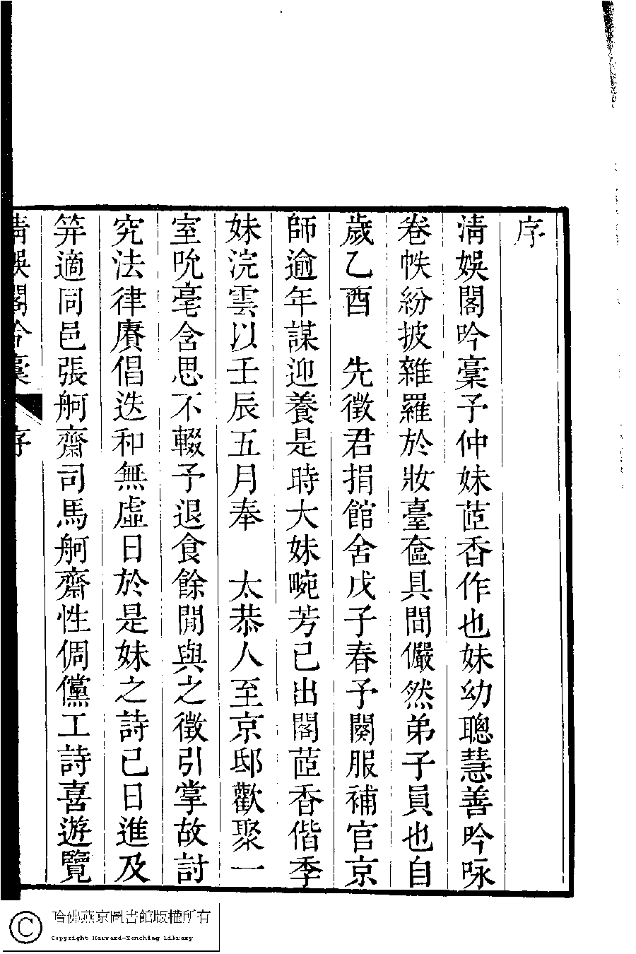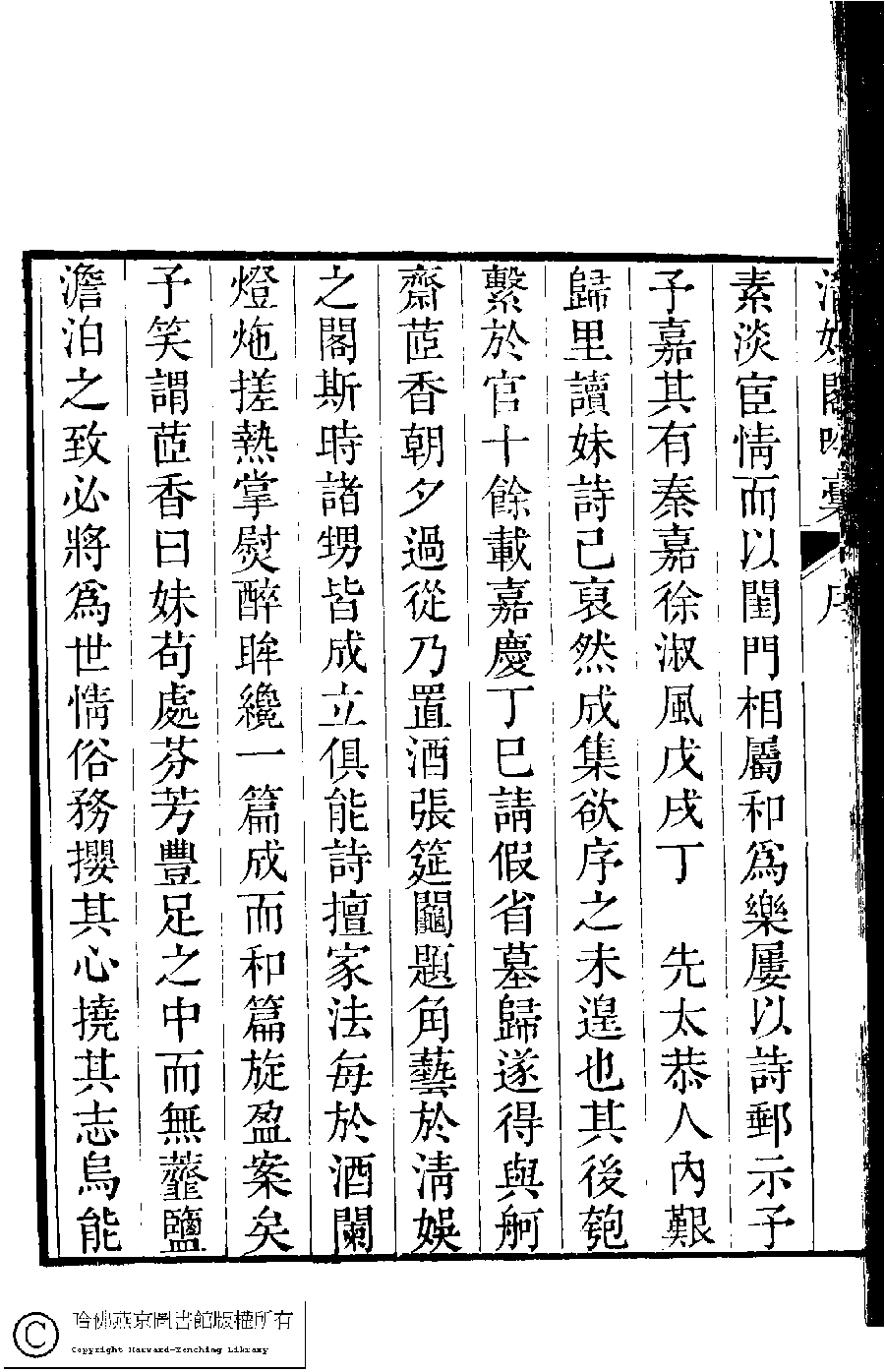 | (PRINT FRIENDLY VERSION) 清娛閣吟稾﹕六卷(清鮑之蕙撰)。嘉慶16年 [1811]刻本 ![]() Page : 鮑之鍾序.2b | click for larger image | 清娛閣吟稾﹕六卷(清鮑之蕙撰)。嘉慶16年 [1811]刻本![]() Page : 鮑之鍾序.2a | click for larger image | 清娛閣吟稾﹕六卷(清鮑之蕙撰)。嘉慶16年 [1811]刻本![]() Page : 鮑之鍾序.1b | click for larger image | 清娛閣吟稾﹕六卷(清鮑之蕙撰)。嘉慶16年 [1811]刻本![]() Page : 鮑之鍾序.1a | click for larger image | Back |