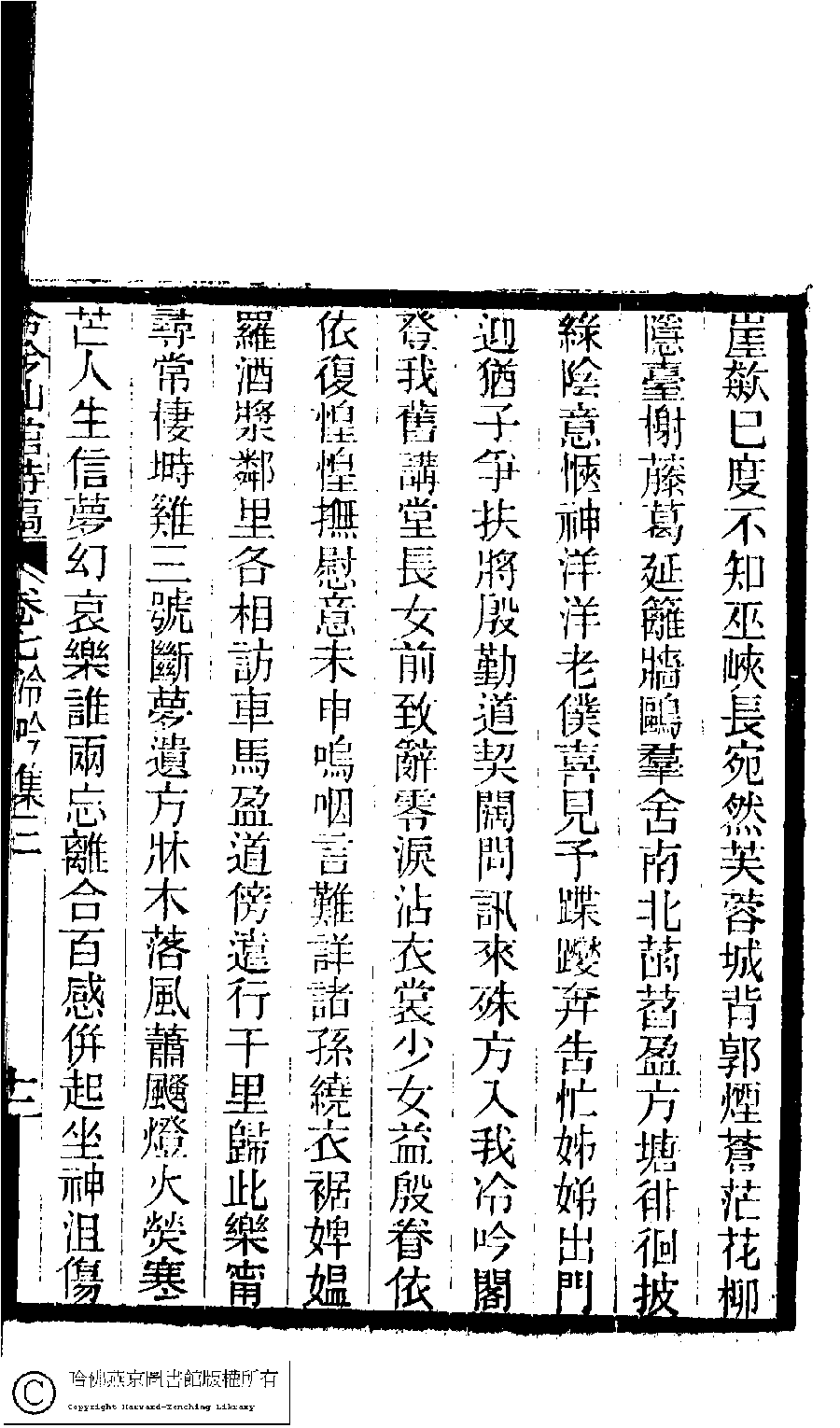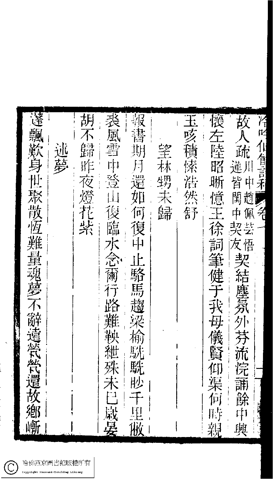 | (PRINT FRIENDLY VERSION) 冷吟仙舘詩稿﹕八卷﹐詩餘一卷﹐文存一卷(淸左錫嘉撰)。淸光緖辛卯(1891)刻本。 ![]() Page : 7.11a | click for larger image | 冷吟仙舘詩稿﹕八卷﹐詩餘一卷﹐文存一卷(淸左錫嘉撰)。淸光緖辛卯(1891)刻本。![]() Page : 7.10b | click for larger image | Back |