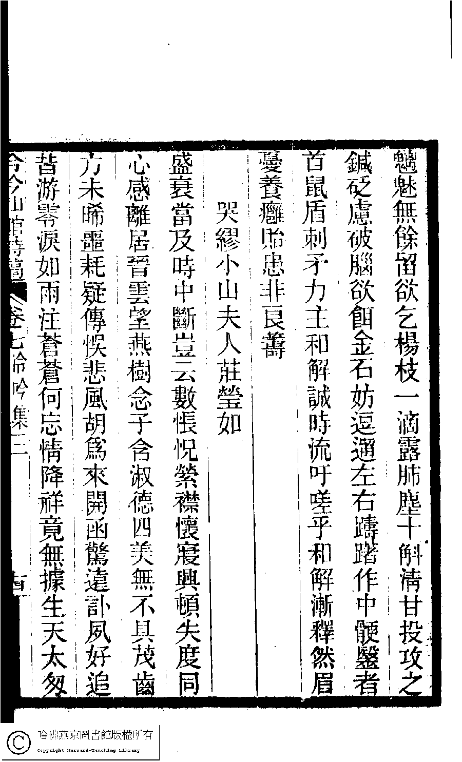 | (PRINT FRIENDLY VERSION) 冷吟仙舘詩稿﹕八卷﹐詩餘一卷﹐文存一卷(淸左錫嘉撰)。淸光緖辛卯(1891)刻本。 ![]() Page : 7.14a | click for larger image | 冷吟仙舘詩稿﹕八卷﹐詩餘一卷﹐文存一卷(淸左錫嘉撰)。淸光緖辛卯(1891)刻本。![]() Page : 7.13b | click for larger image | Back |