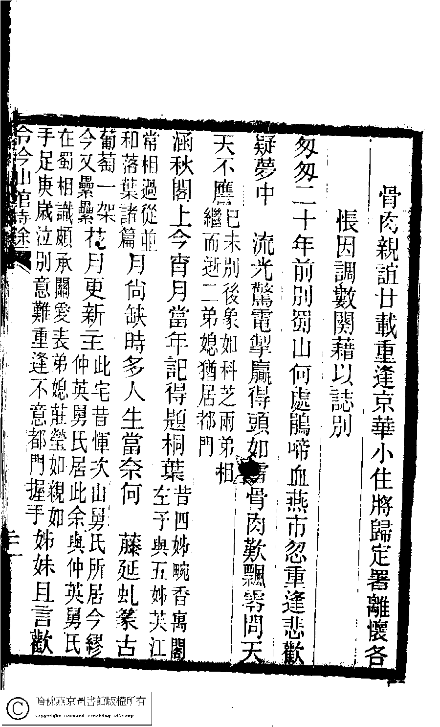 | (PRINT FRIENDLY VERSION) 冷吟仙舘詩稿﹕八卷﹐詩餘一卷﹐文存一卷(淸左錫嘉撰)。淸光緖辛卯(1891)刻本。 ![]() Page : 詩餘.20b | click for larger image | 冷吟仙舘詩稿﹕八卷﹐詩餘一卷﹐文存一卷(淸左錫嘉撰)。淸光緖辛卯(1891)刻本。![]() Page : 詩餘.20a | click for larger image | 冷吟仙舘詩稿﹕八卷﹐詩餘一卷﹐文存一卷(淸左錫嘉撰)。淸光緖辛卯(1891)刻本。![]() Page : 詩餘.19b | click for larger image | Back |