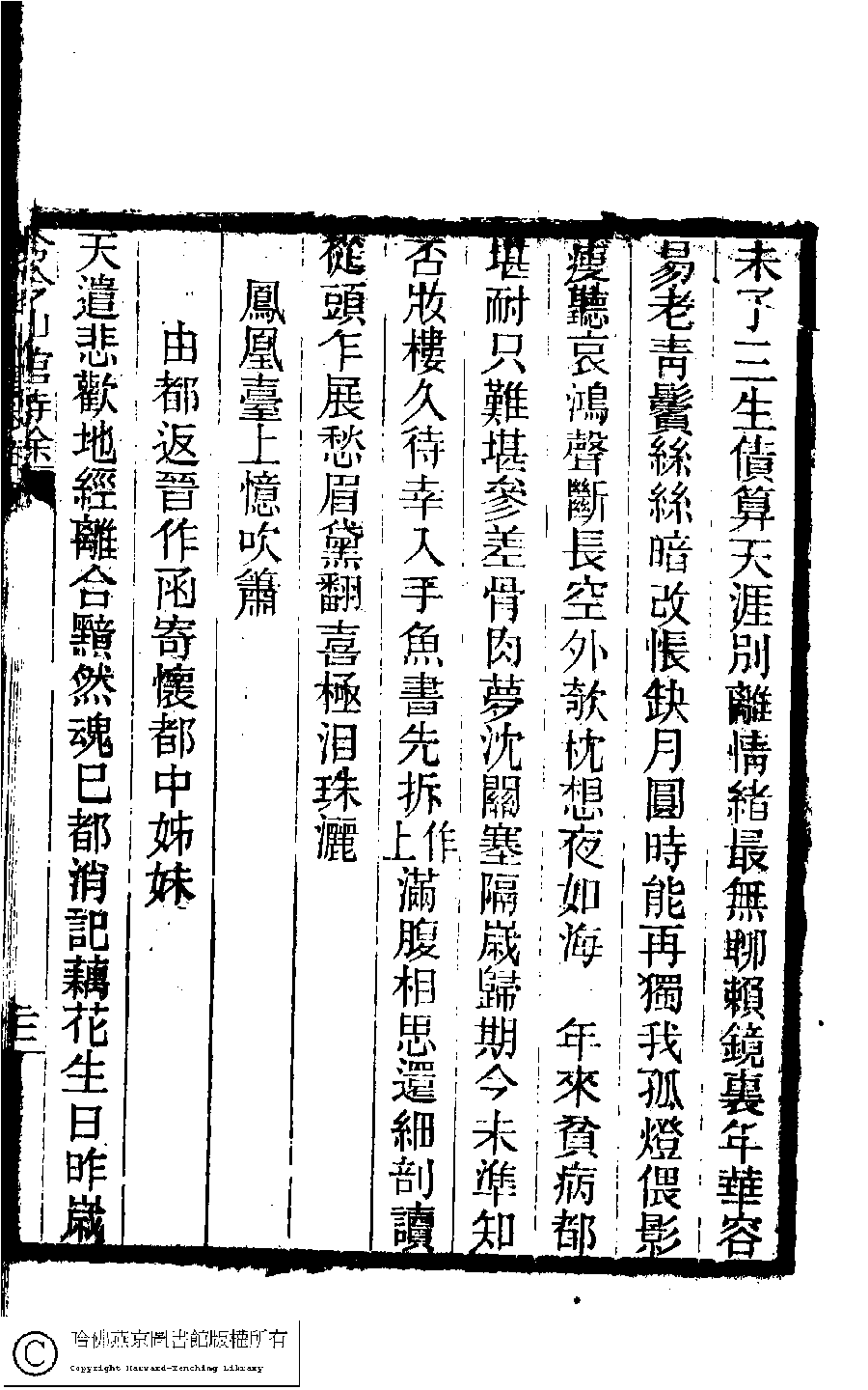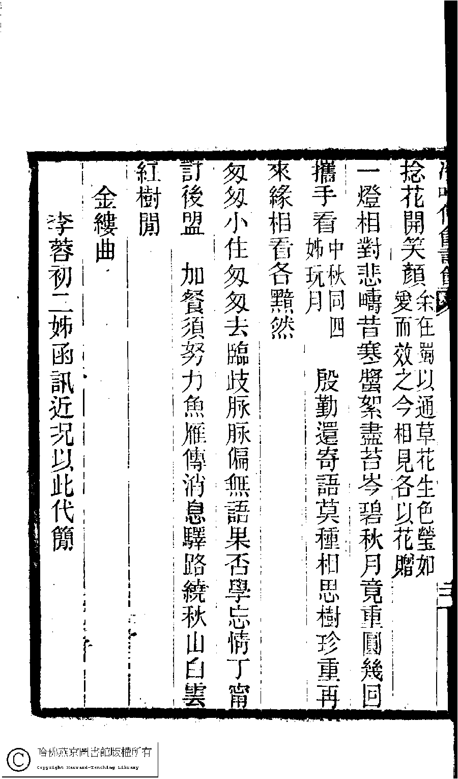 | (PRINT FRIENDLY VERSION) 冷吟仙舘詩稿﹕八卷﹐詩餘一卷﹐文存一卷(淸左錫嘉撰)。淸光緖辛卯(1891)刻本。 ![]() Page : 詩餘.21a | click for larger image | 冷吟仙舘詩稿﹕八卷﹐詩餘一卷﹐文存一卷(淸左錫嘉撰)。淸光緖辛卯(1891)刻本。![]() Page : 詩餘.20b | click for larger image | Back |