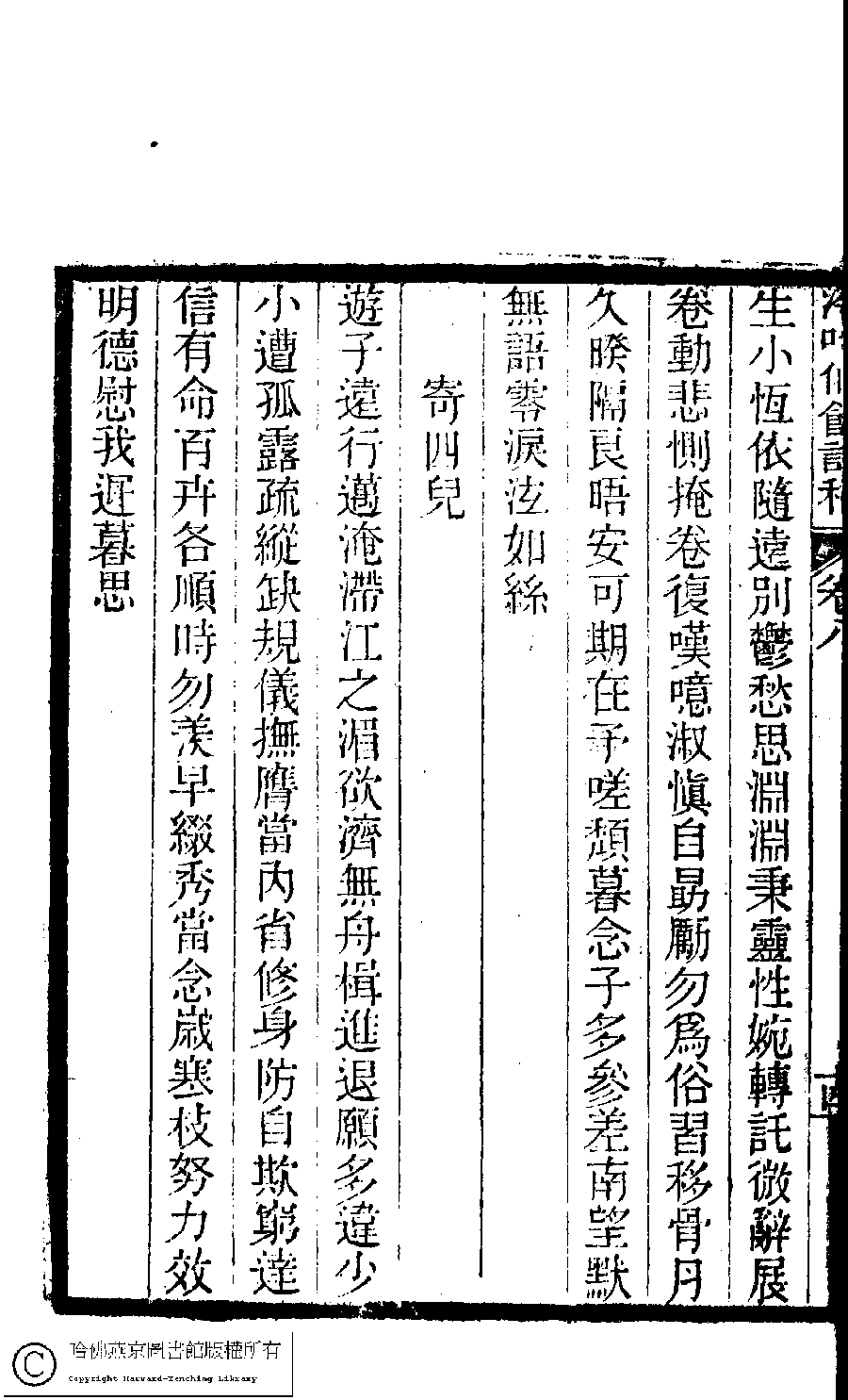 | (PRINT FRIENDLY VERSION) 冷吟仙舘詩稿﹕八卷﹐詩餘一卷﹐文存一卷(淸左錫嘉撰)。淸光緖辛卯(1891)刻本。 ![]() Page : 8.14b | click for larger image | 冷吟仙舘詩稿﹕八卷﹐詩餘一卷﹐文存一卷(淸左錫嘉撰)。淸光緖辛卯(1891)刻本。![]() Page : 8.14a | click for larger image | Back |