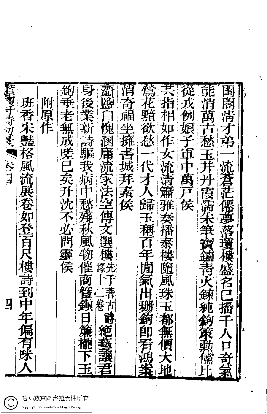 | Appears in: Dan ju xuan shi chu gao : 4 juan, ci : 1 juan (by Zhang Qieying, Qing dynasty) |