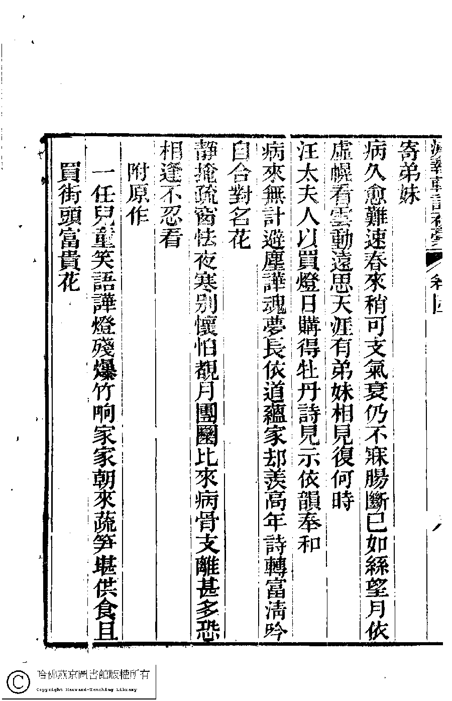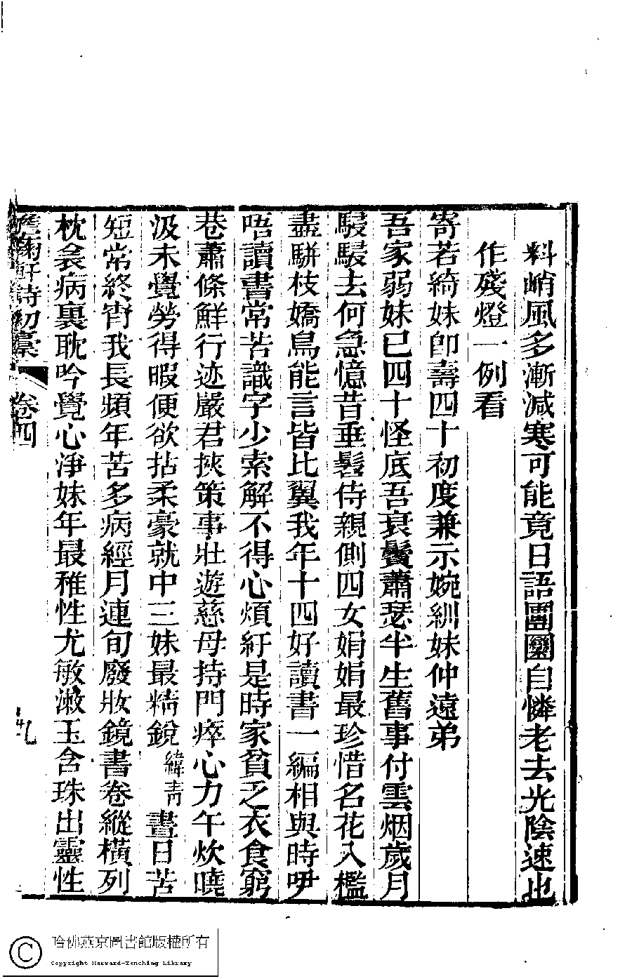 | (PRINT FRIENDLY VERSION) 澹蘜軒詩初稿﹕四卷﹐詞﹕一卷(清張䌌英撰)。道光二十年(1840)刻本。 ![]() Page : 4.9a | click for larger image | 澹蘜軒詩初稿﹕四卷﹐詞﹕一卷(清張䌌英撰)。道光二十年(1840)刻本。![]() Page : 4.8b | click for larger image | Back |