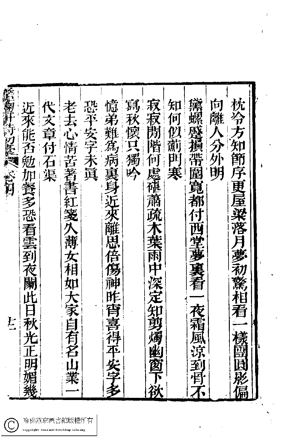 | (PRINT FRIENDLY VERSION) 澹蘜軒詩初稿﹕四卷﹐詞﹕一卷(清張䌌英撰)。道光二十年(1840)刻本。 ![]() Page : 4.12b | click for larger image | 澹蘜軒詩初稿﹕四卷﹐詞﹕一卷(清張䌌英撰)。道光二十年(1840)刻本。![]() Page : 4.12a | click for larger image | 澹蘜軒詩初稿﹕四卷﹐詞﹕一卷(清張䌌英撰)。道光二十年(1840)刻本。![]() Page : 4.11b | click for larger image | Back |