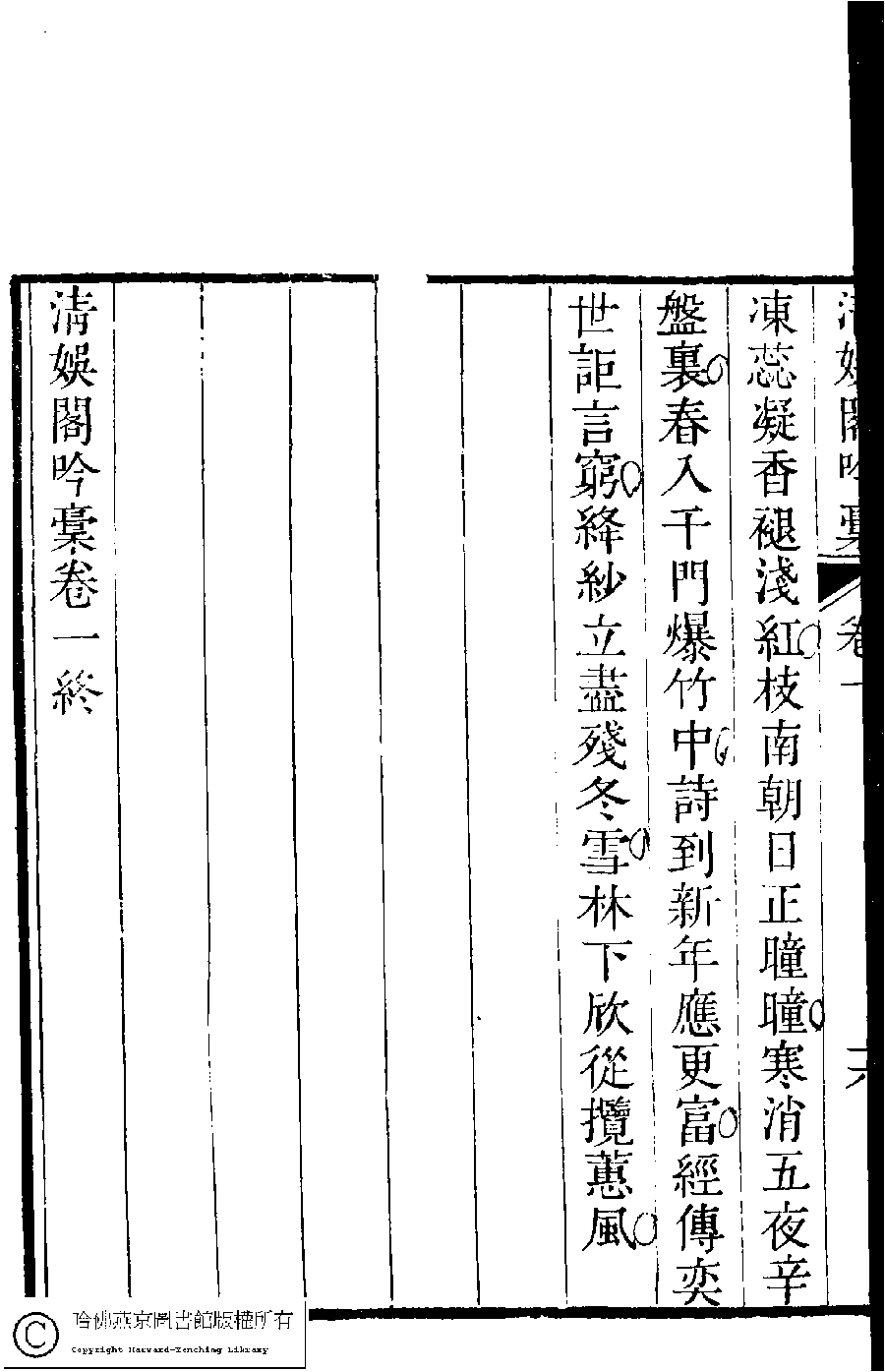 | (PRINT FRIENDLY VERSION) 清娛閣吟稾﹕六卷(清鮑之蕙撰)。嘉慶16年 [1811]刻本 ![]() Page : 1.16b | click for larger image | 清娛閣吟稾﹕六卷(清鮑之蕙撰)。嘉慶16年 [1811]刻本![]() Page : 1.16a | click for larger image | Back |