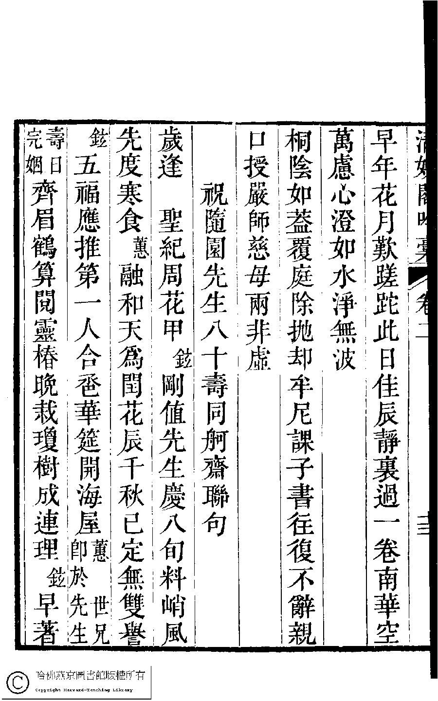 | (PRINT FRIENDLY VERSION) 清娛閣吟稾﹕六卷(清鮑之蕙撰)。嘉慶16年 [1811]刻本 ![]() Page : 2.13b | click for larger image | 清娛閣吟稾﹕六卷(清鮑之蕙撰)。嘉慶16年 [1811]刻本![]() Page : 2.13a | click for larger image | Back |