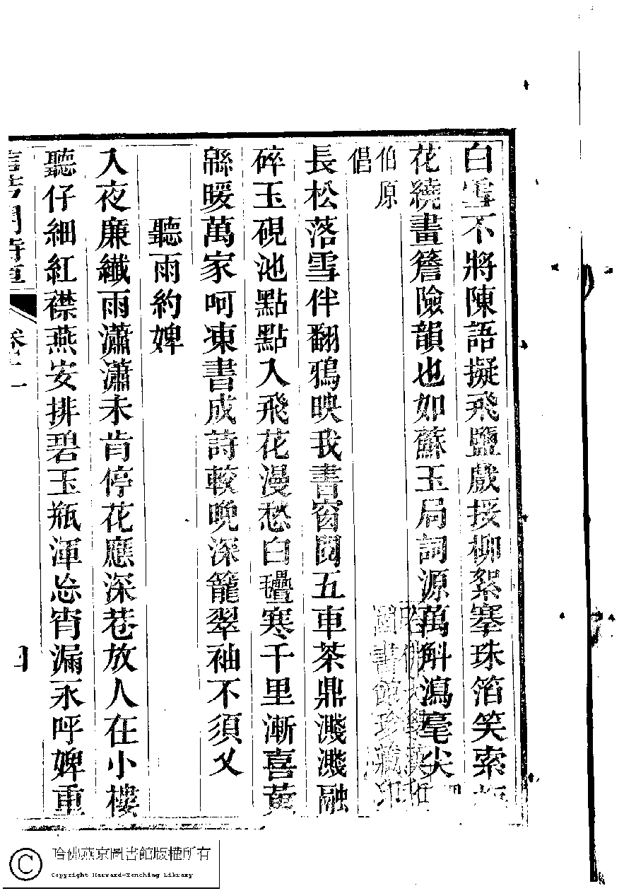 | Appears in: Xin fang ge shi cao: 5 juan (by Chen Yunlian, Qing dynasty) |