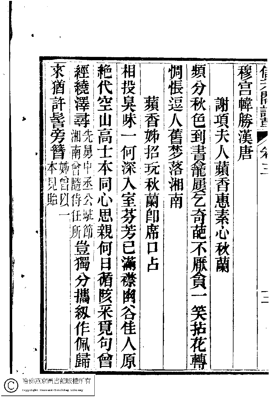 | (PRINT FRIENDLY VERSION) 信芳閣詩草﹕五卷(清陳蘊蓮撰)。清咸豐九年(1859)刻本。 ![]() Page : 3.3b | click for larger image | 信芳閣詩草﹕五卷(清陳蘊蓮撰)。清咸豐九年(1859)刻本。![]() Page : 3.3a | click for larger image | Back |