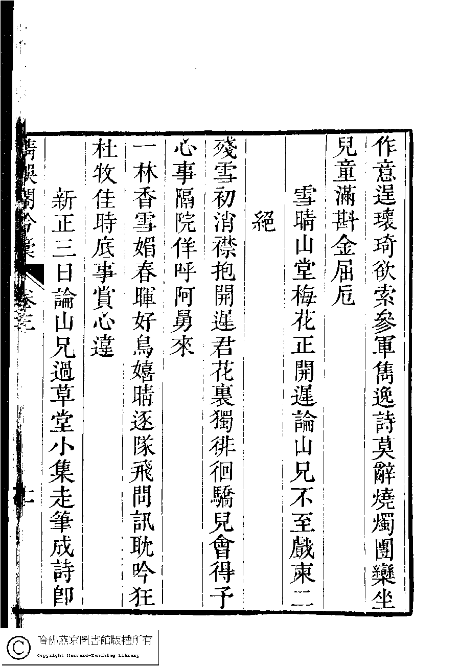 | (PRINT FRIENDLY VERSION) 清娛閣吟稾﹕六卷(清鮑之蕙撰)。嘉慶16年 [1811]刻本 ![]() Page : 3.11a | click for larger image | 清娛閣吟稾﹕六卷(清鮑之蕙撰)。嘉慶16年 [1811]刻本![]() Page : 3.10b | click for larger image | Back |