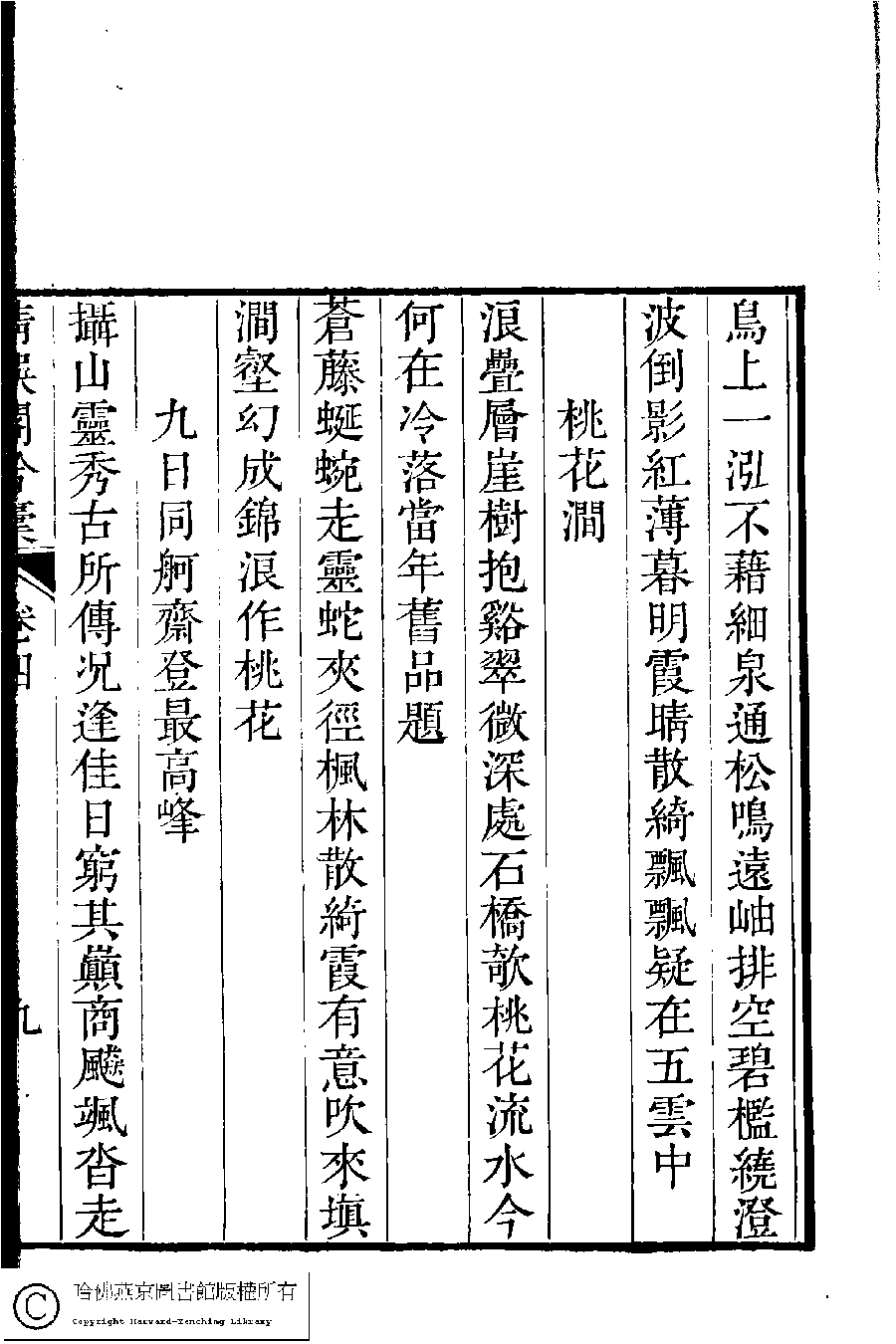 | (PRINT FRIENDLY VERSION) 清娛閣吟稾﹕六卷(清鮑之蕙撰)。嘉慶16年 [1811]刻本 ![]() Page : 4.9a | click for larger image | Back |