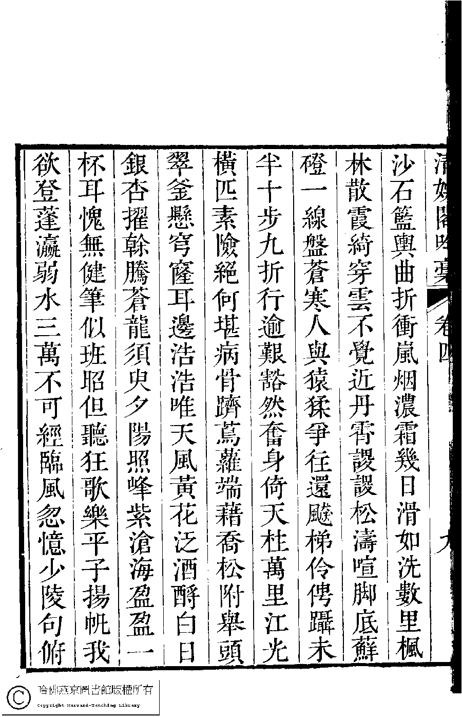 | (PRINT FRIENDLY VERSION) 清娛閣吟稾﹕六卷(清鮑之蕙撰)。嘉慶16年 [1811]刻本 ![]() Page : 4.10a | click for larger image | 清娛閣吟稾﹕六卷(清鮑之蕙撰)。嘉慶16年 [1811]刻本![]() Page : 4.9b | click for larger image | 清娛閣吟稾﹕六卷(清鮑之蕙撰)。嘉慶16年 [1811]刻本![]() Page : 4.9a | click for larger image | Back |