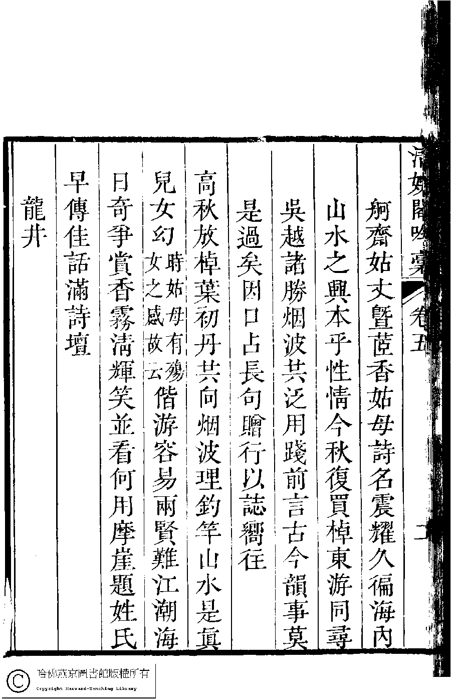 | (PRINT FRIENDLY VERSION) 清娛閣吟稾﹕六卷(清鮑之蕙撰)。嘉慶16年 [1811]刻本 ![]() Page : 5.3b | click for larger image | 清娛閣吟稾﹕六卷(清鮑之蕙撰)。嘉慶16年 [1811]刻本![]() Page : 5.3a | click for larger image | 清娛閣吟稾﹕六卷(清鮑之蕙撰)。嘉慶16年 [1811]刻本![]() Page : 5.2b | click for larger image | Back |
