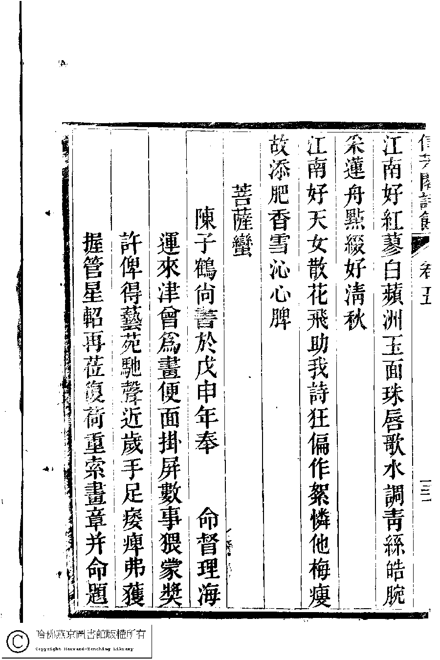 | Appears in: Xin fang ge shi cao: 5 juan (by Chen Yunlian, Qing dynasty) |