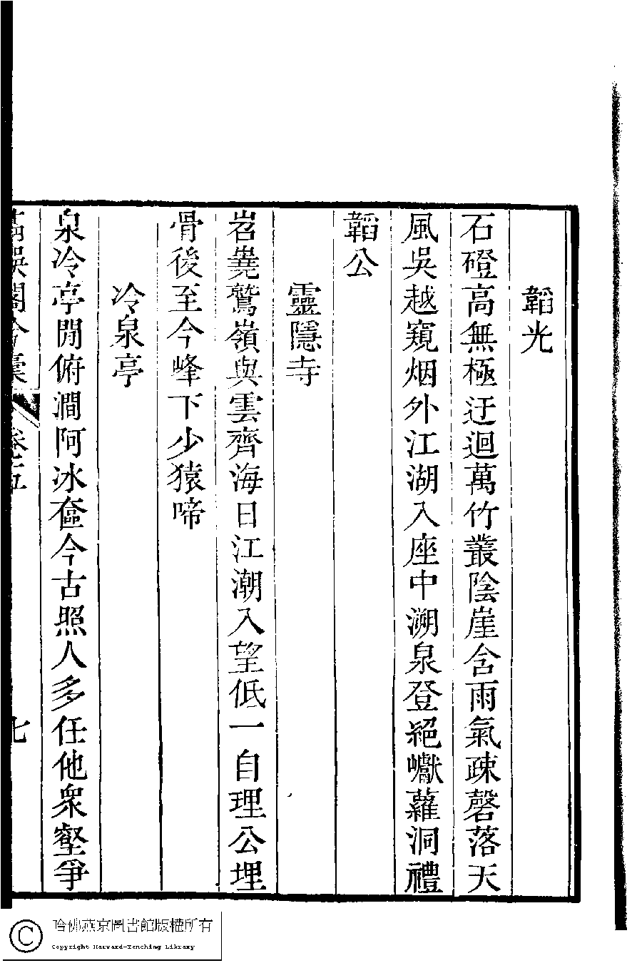 | (PRINT FRIENDLY VERSION) 清娛閣吟稾﹕六卷(清鮑之蕙撰)。嘉慶16年 [1811]刻本 ![]() Page : 5.7a | click for larger image | Back |