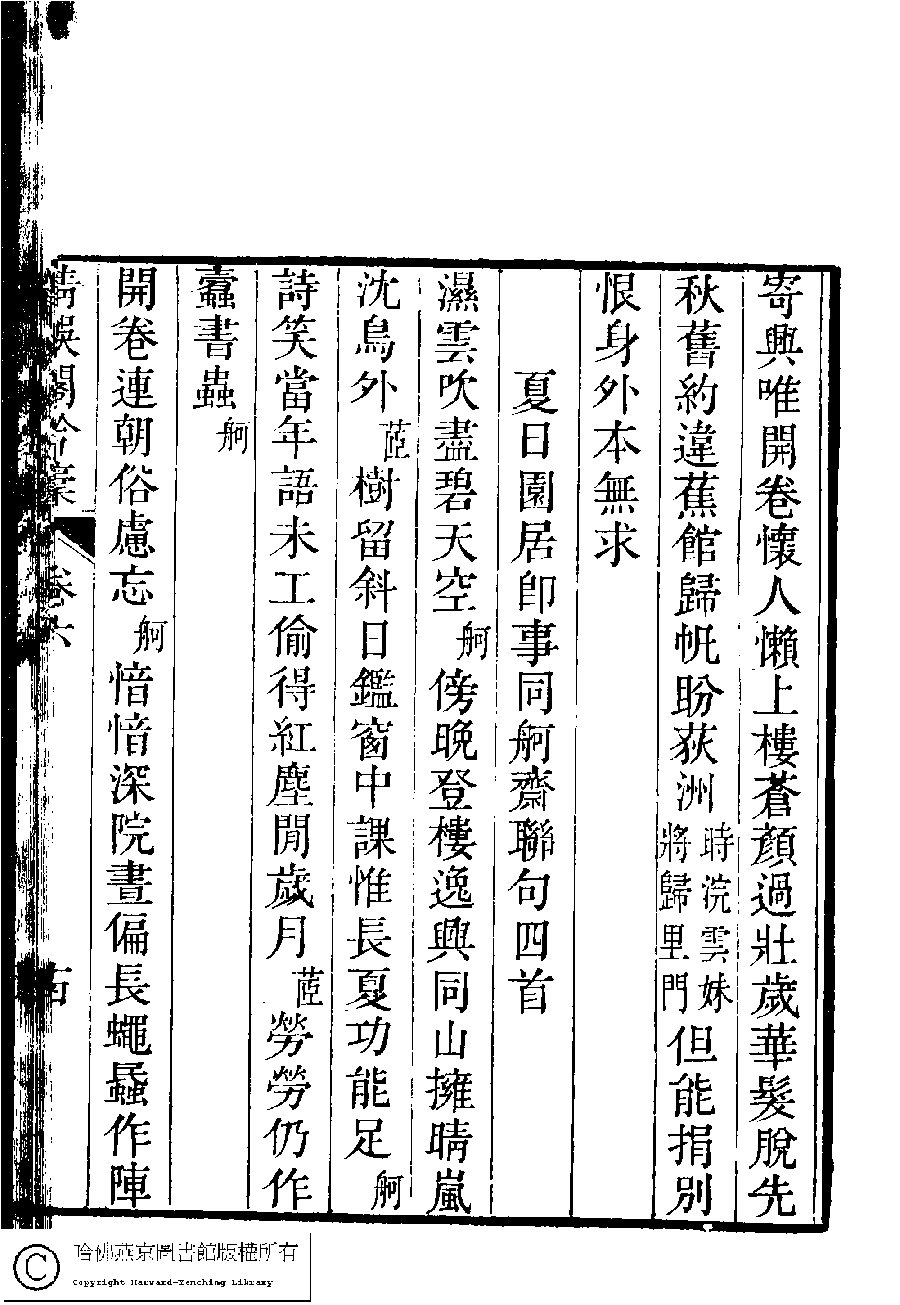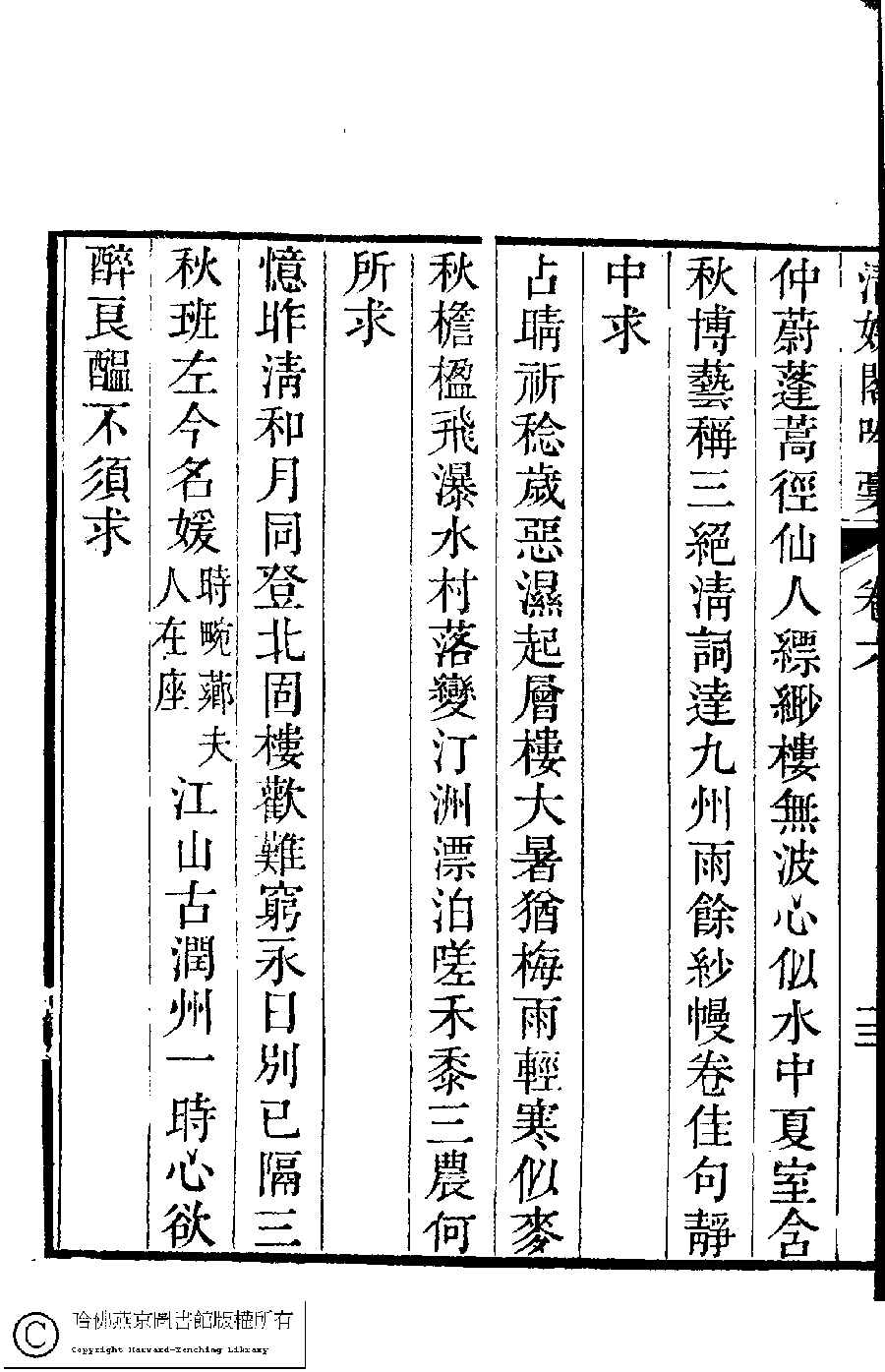 | (PRINT FRIENDLY VERSION) 清娛閣吟稾﹕六卷(清鮑之蕙撰)。嘉慶16年 [1811]刻本 ![]() Page : 6.14a | click for larger image | 清娛閣吟稾﹕六卷(清鮑之蕙撰)。嘉慶16年 [1811]刻本![]() Page : 6.13b | click for larger image | 清娛閣吟稾﹕六卷(清鮑之蕙撰)。嘉慶16年 [1811]刻本![]() Page : 6.13a | click for larger image | Back |