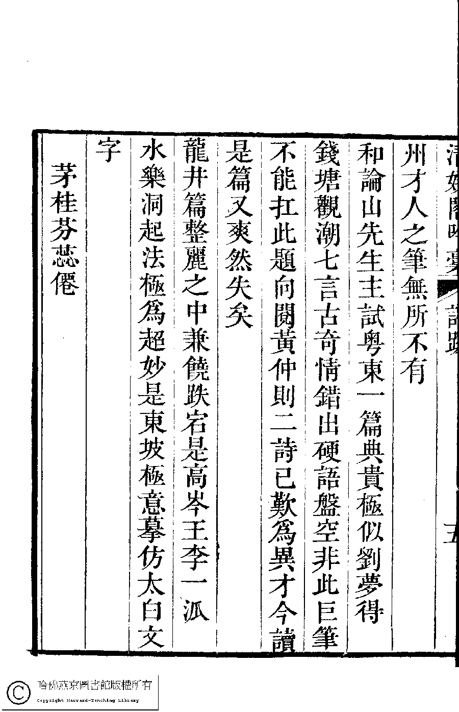 | (PRINT FRIENDLY VERSION) 清娛閣吟稾﹕六卷(清鮑之蕙撰)。嘉慶16年 [1811]刻本 ![]() Page : 評跋.6a | click for larger image | 清娛閣吟稾﹕六卷(清鮑之蕙撰)。嘉慶16年 [1811]刻本![]() Page : 評跋.5b | click for larger image | Back |