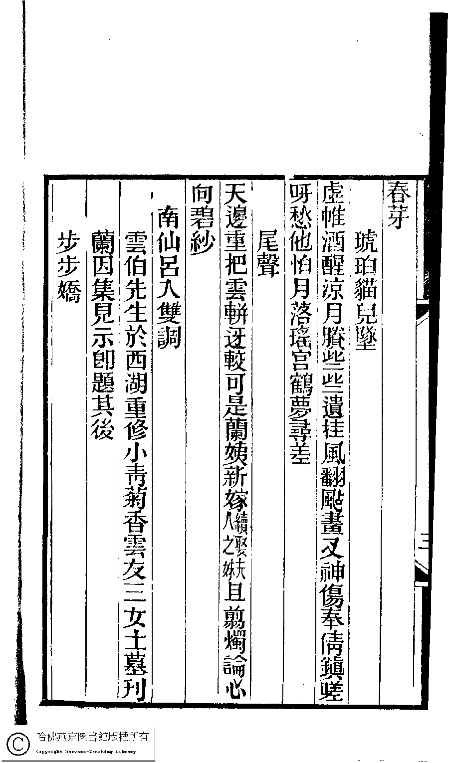 | (PRINT FRIENDLY VERSION) 林下雅音集﹕五種(淸冒俊輯) : 香南雪北詞: 一卷。淸光緖十年(1884)刻本。 ![]() Page : 3b | click for larger image | 林下雅音集﹕五種(淸冒俊輯) : 香南雪北詞: 一卷。淸光緖十年(1884)刻本。![]() Page : 3a | click for larger image | Back |