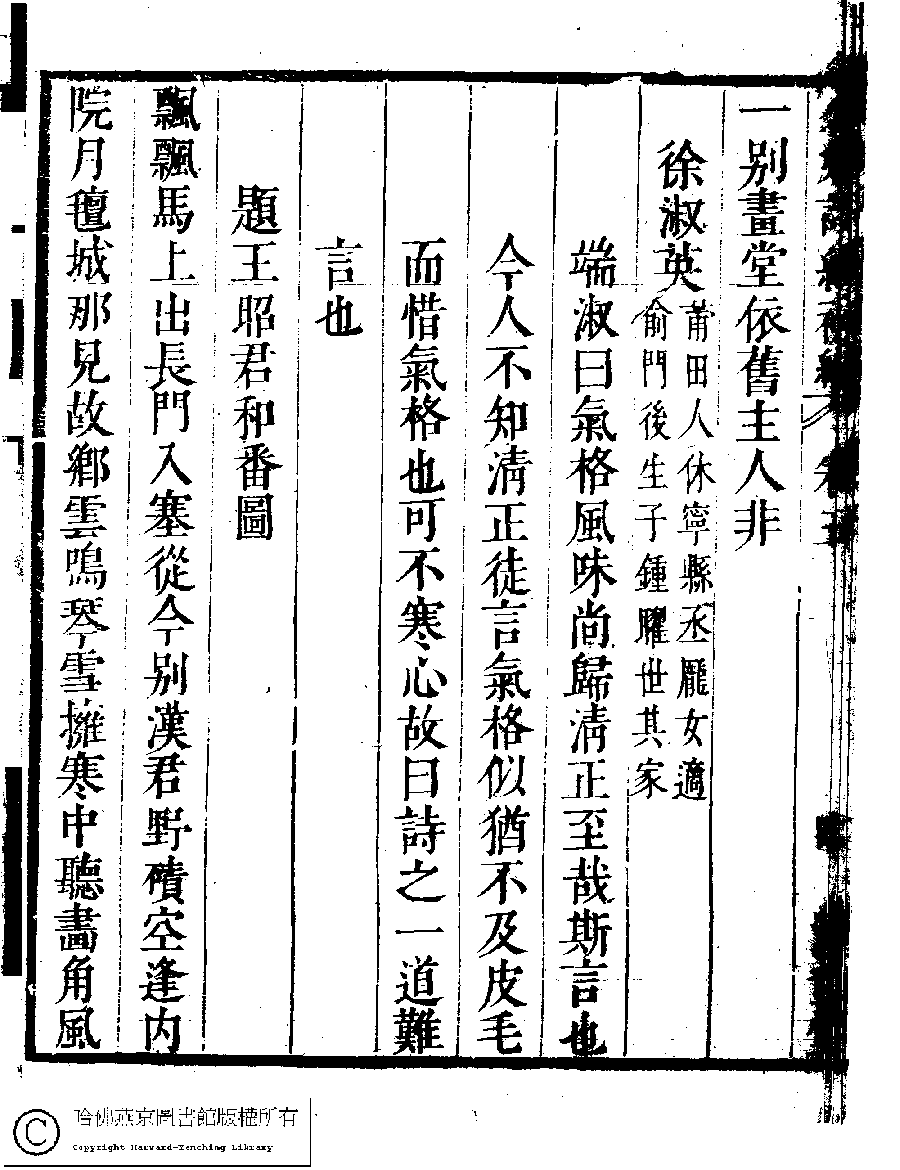 | (PRINT FRIENDLY VERSION) 名媛詩緯初編(清王端淑輯)。清康熙六年(1667)清音堂刻本 ![]() Page : 5.4b | click for larger image | Back |