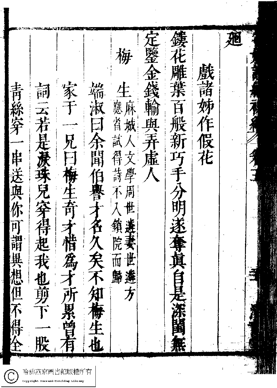 | (PRINT FRIENDLY VERSION) 名媛詩緯初編(清王端淑輯)。清康熙六年(1667)清音堂刻本 ![]() Page : 5.21b | click for larger image | Back |
